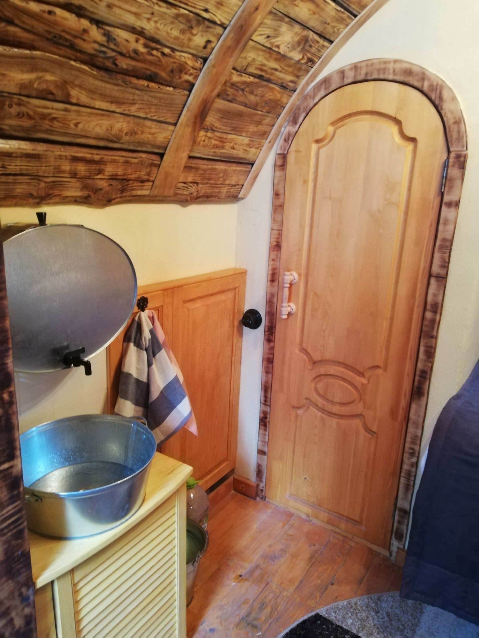 - Умывальник и раковина в домике, ведро для переноса воды;