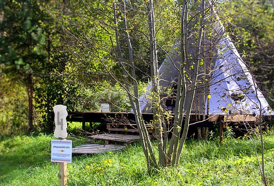 Типи "Крадущийся Яго" крадется в сторону уединения от общей зоны. До большого шатра и выхода к реке ведет широкая дорожка протяженностью 120м ;) В каждом шатре: большая двуспальная кровать с ортопедическими матрасами, дополнительные спальные места (по запросу), тумбы-столики, вешалка для одежды и хранения вещей, газовый обогреватель. Гриль на веранде и комфортные надувные шезлонги. Туалет и мини-кухня на территории.