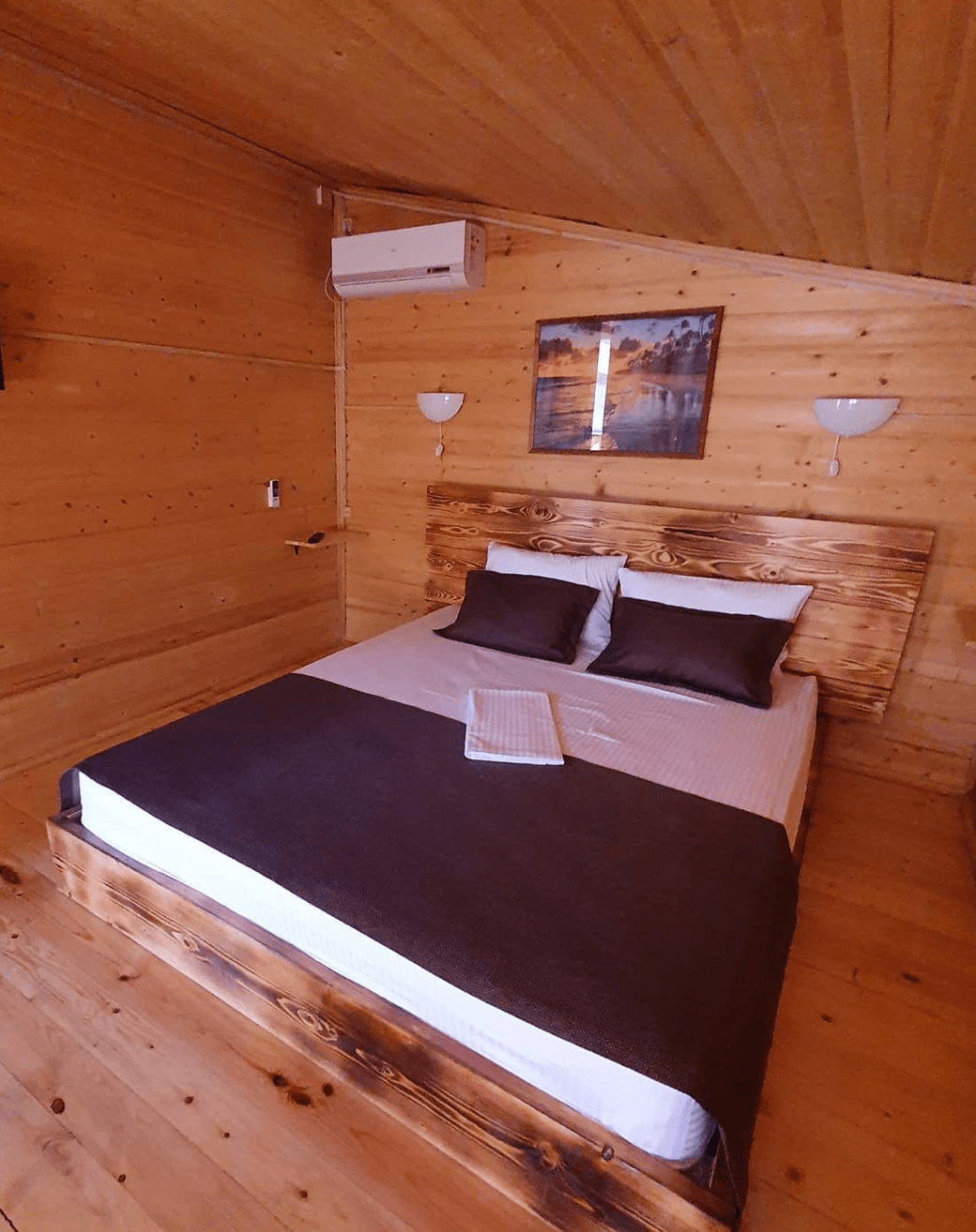 В распоряжении гостей эко-отеля KORiTZA - шесть уютных двухэтажных домиков из деревянного бруса.