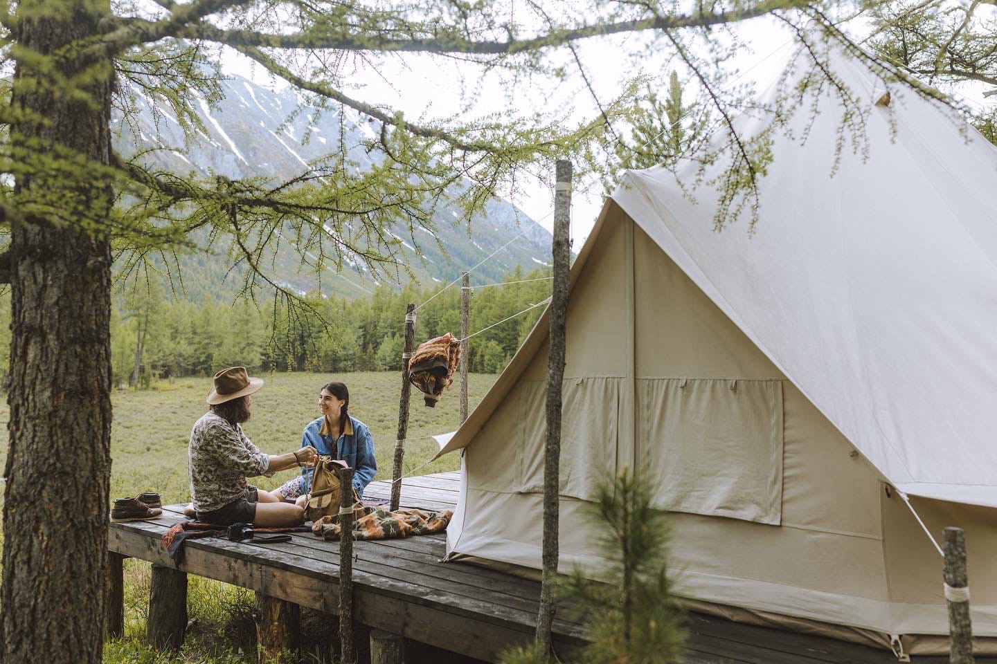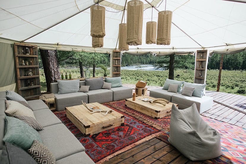 С комфортом могут разместиться одновременно до 14 гостей. В лагере 6 палаток, все они расположены на деревянных настилах на комфортном удалении друг от друга.