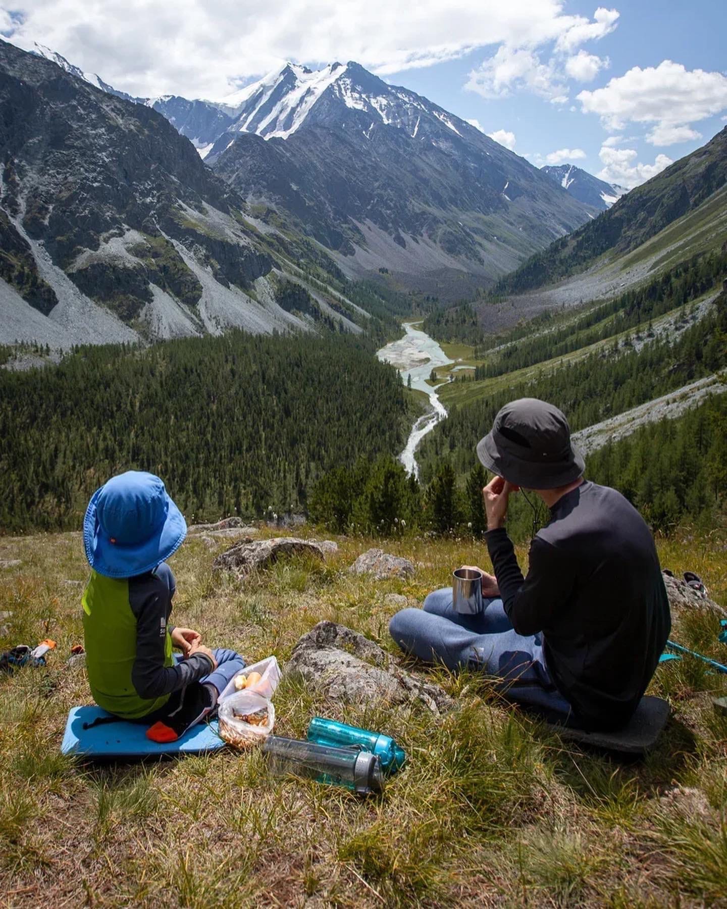 Последняя большая экскурсия нашего тура — подъем на ближайшую вершину, откуда открывается новый вид на Белуху. В этот день участники похода смогут почувствовать себя немного альпинистами. Подъем на 500−600 метров займет несколько часов. С этой площадки мы насладимся видом на долину Йедыгема и водопада Менсу. Время на отдых и перекус, а во второй половине дня начнется спуск в лагерь. Вечером группу ожидает праздничный ужин, которым мы отметим завершение тура по Алтаю.