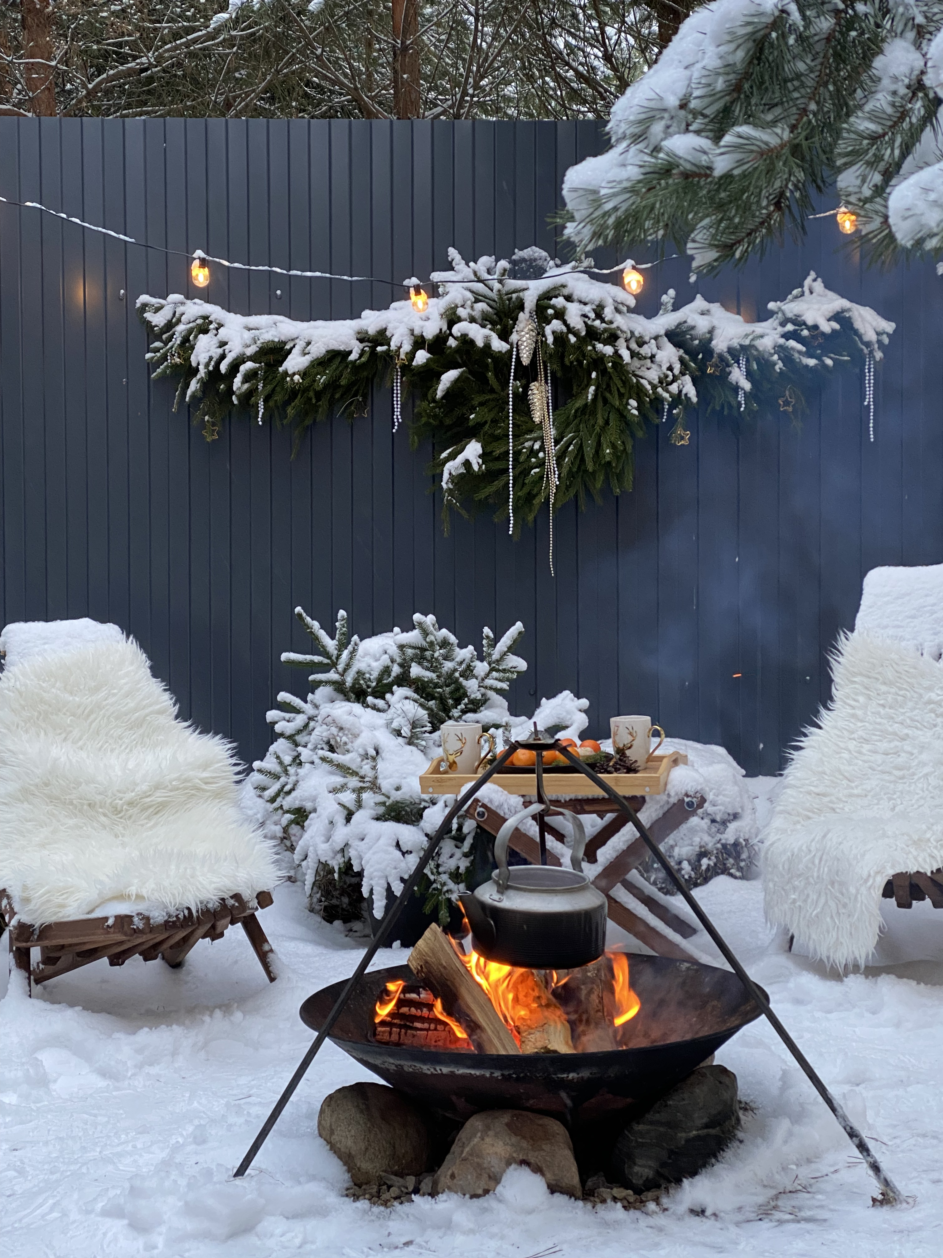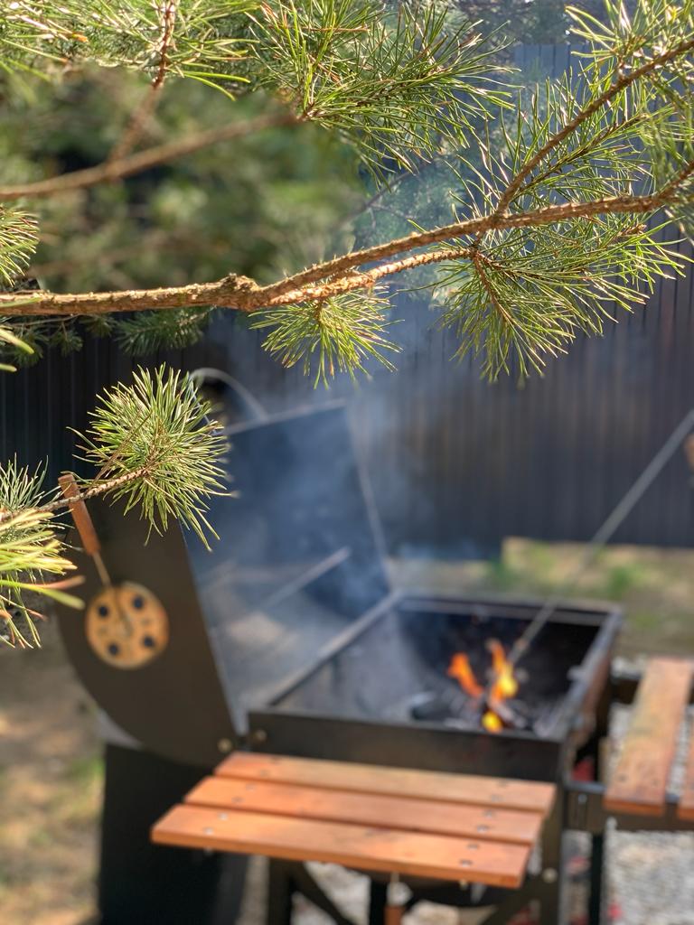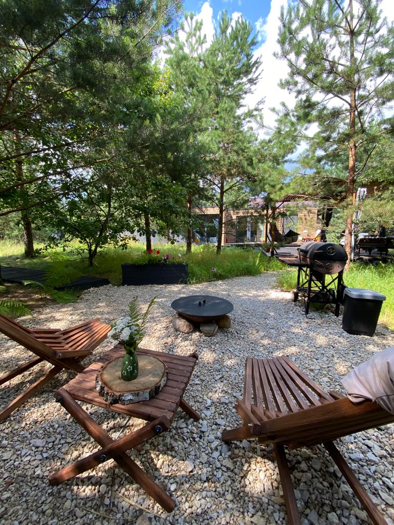 На территории домика есть костровая зона и зона барбекю со всеми принадлежностями, купель с