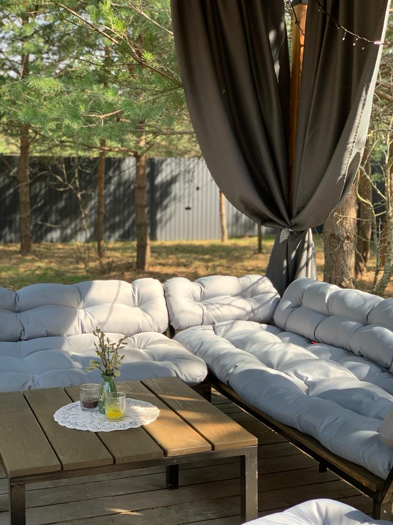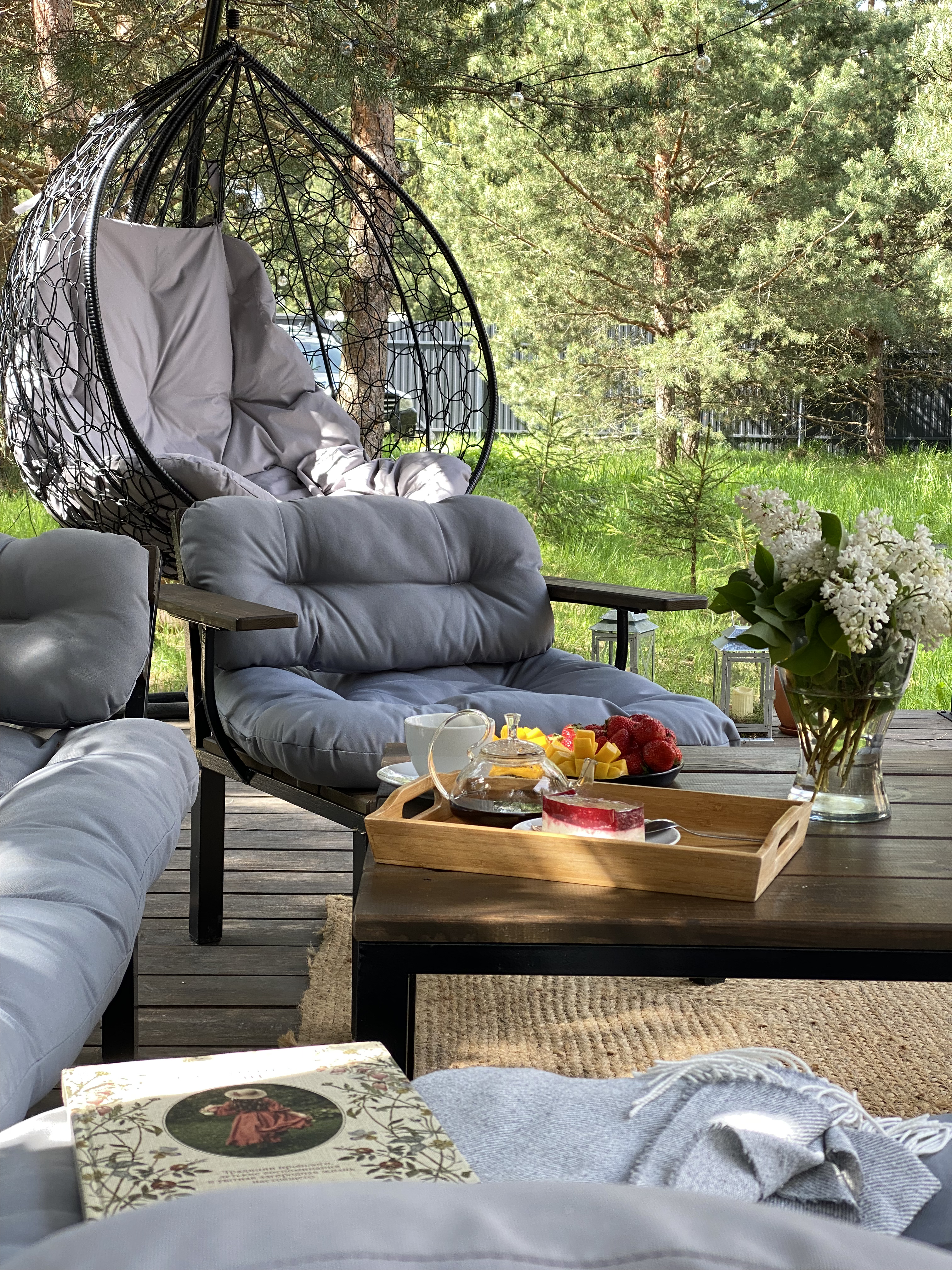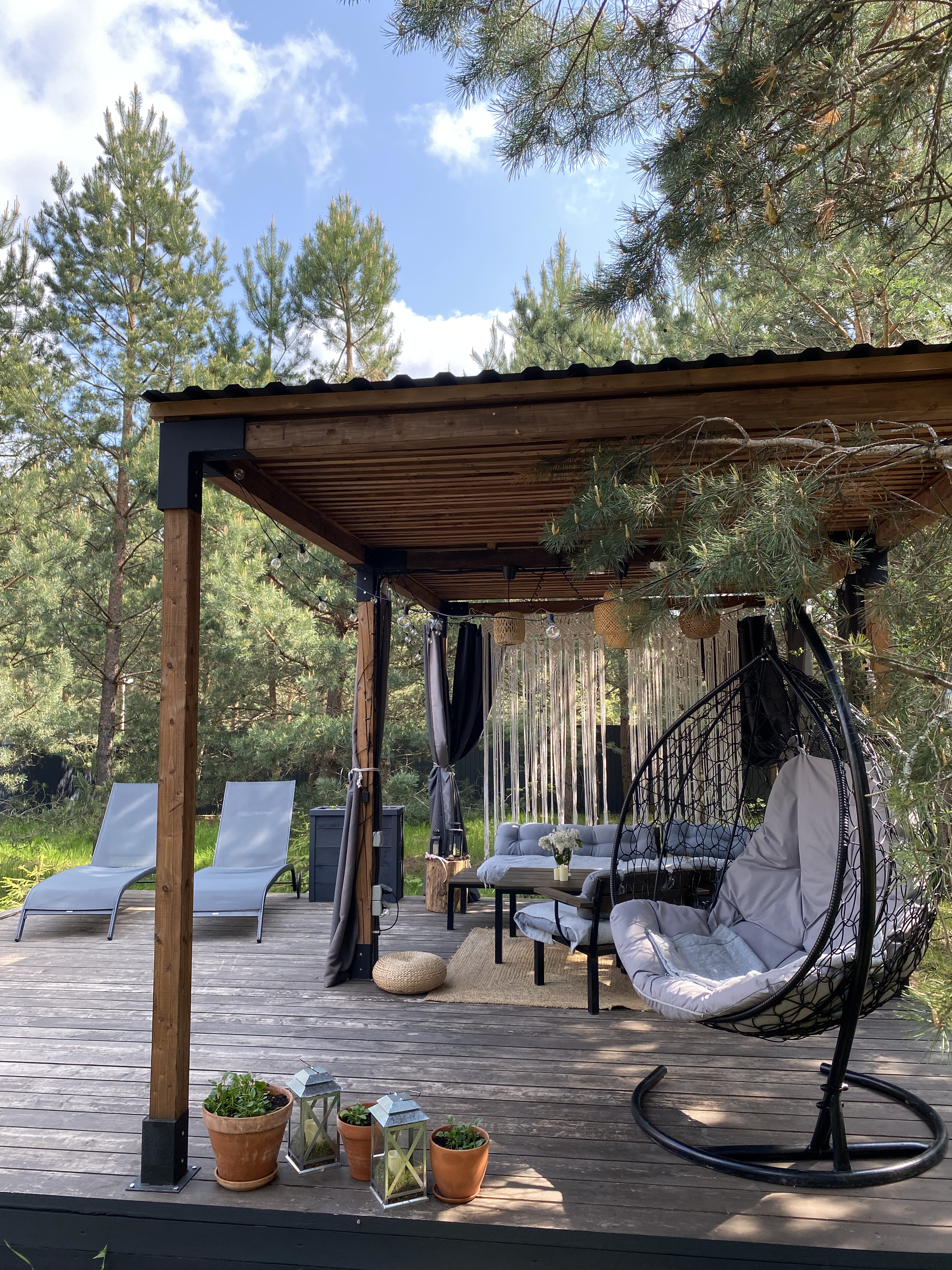 стильной беседкой с комфортными шезлонгами, гамаками и качелями.