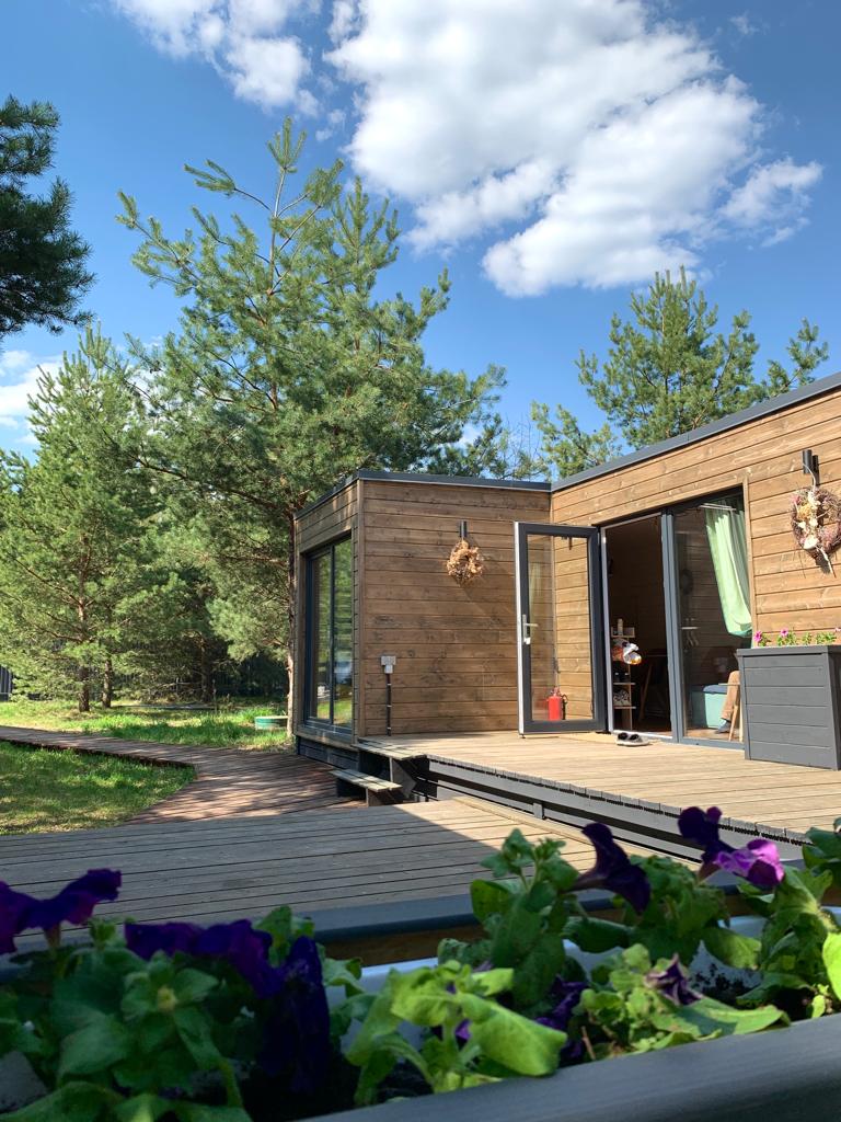горячей и холодной водой. Домик оборудован просторной террасой открытого типа, а также