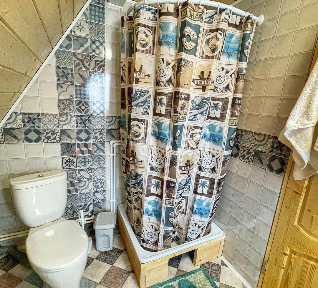 - Санузел внутри, душ, унитаз, умывальник, фен.