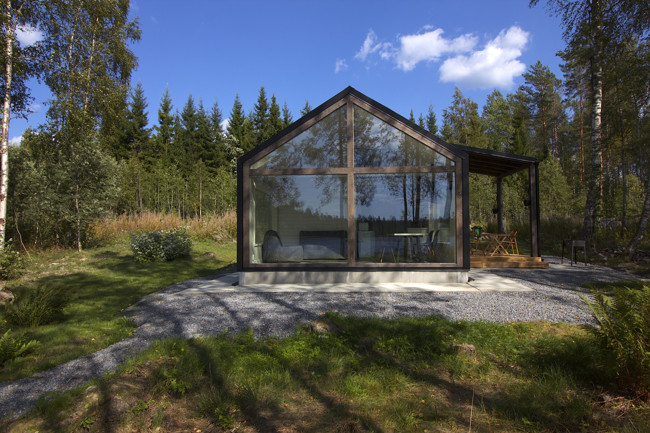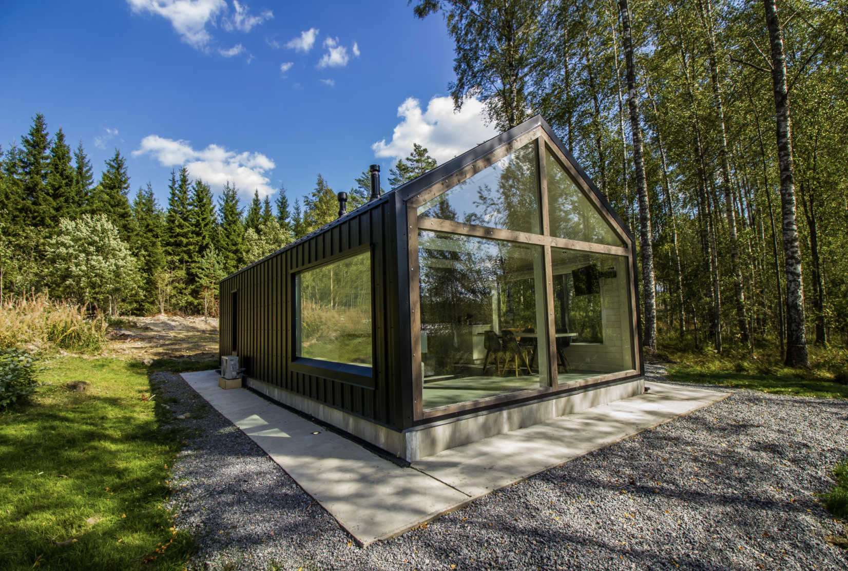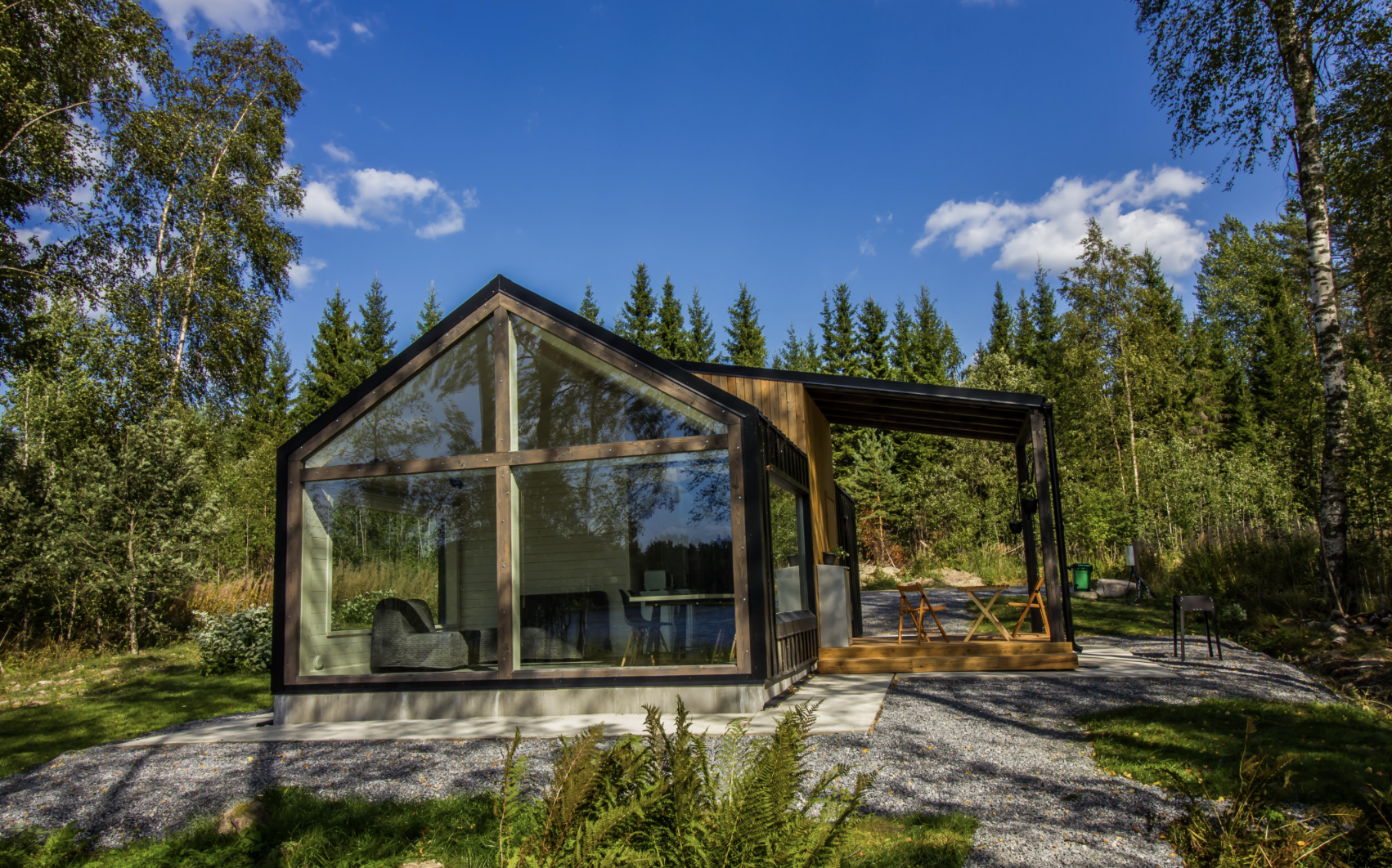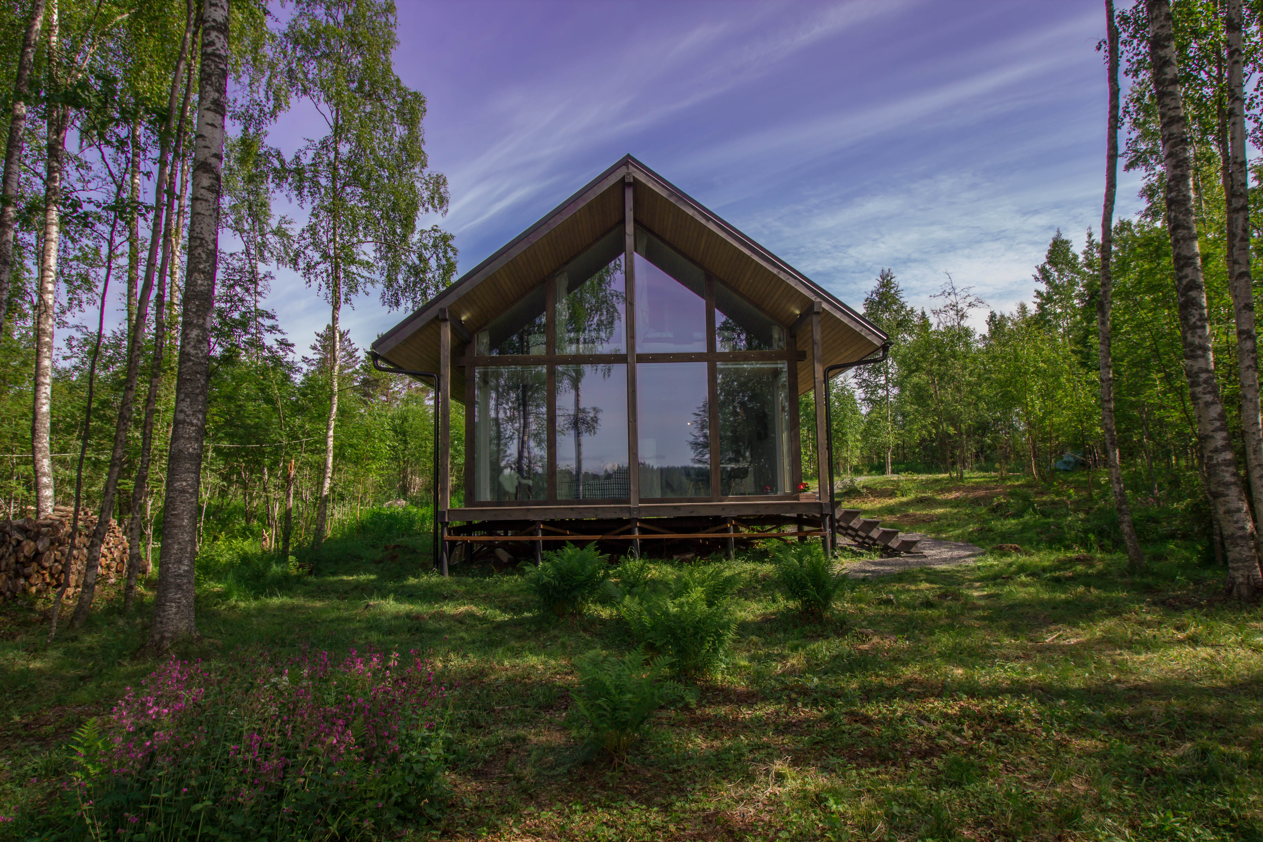 На территории 3 мини-домика на расстоянии 10-15 метров, терраса каждого отвернута от соседнего дома
