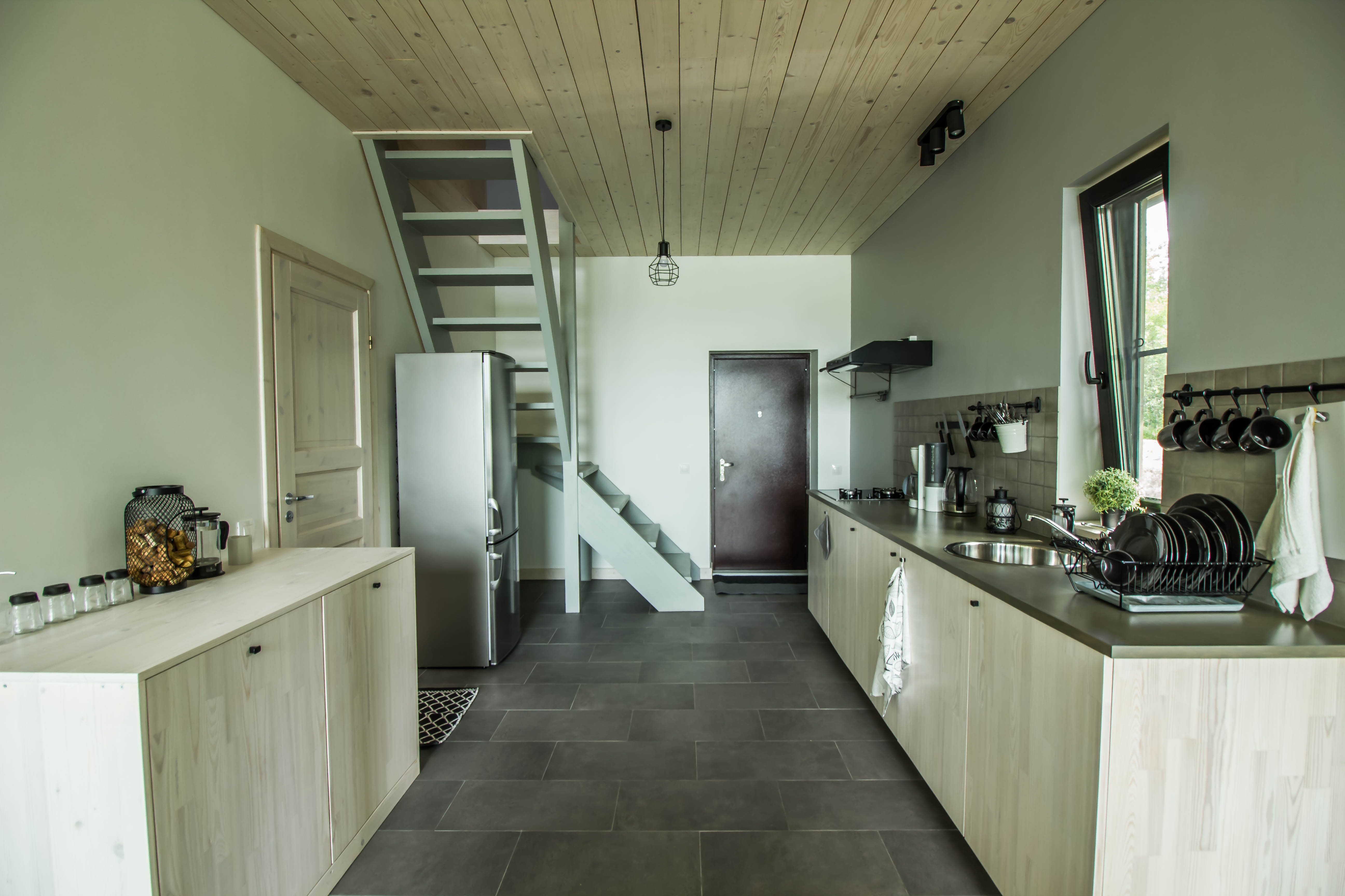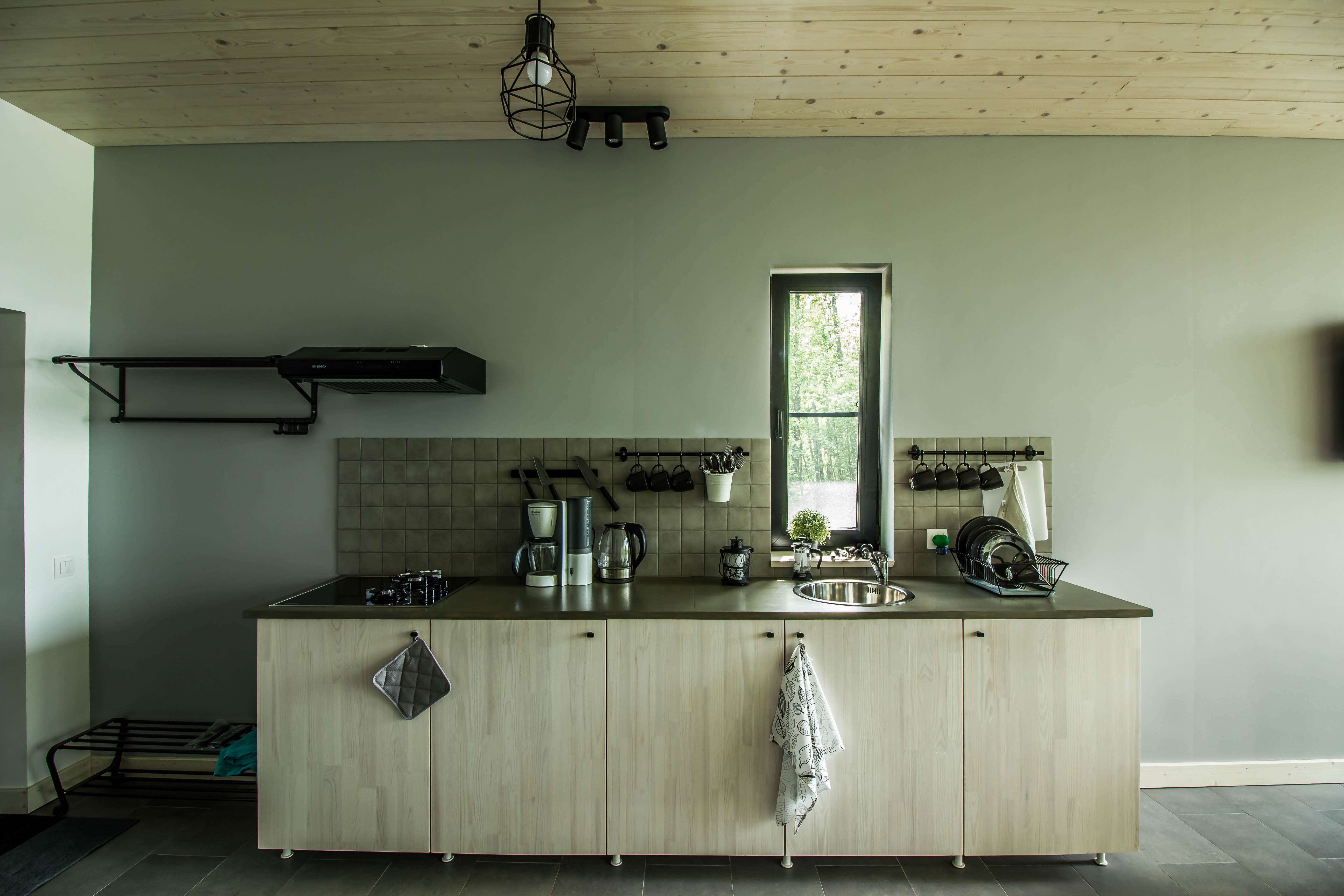 - Кухня, полностью оснащенная необходимой посудой и техникой: холодильник с морозильной камерой, варочная панель, капельная кофеварка, микроволновка, посудомойкой и стиральная машина. Также есть вся необходимая посуда.