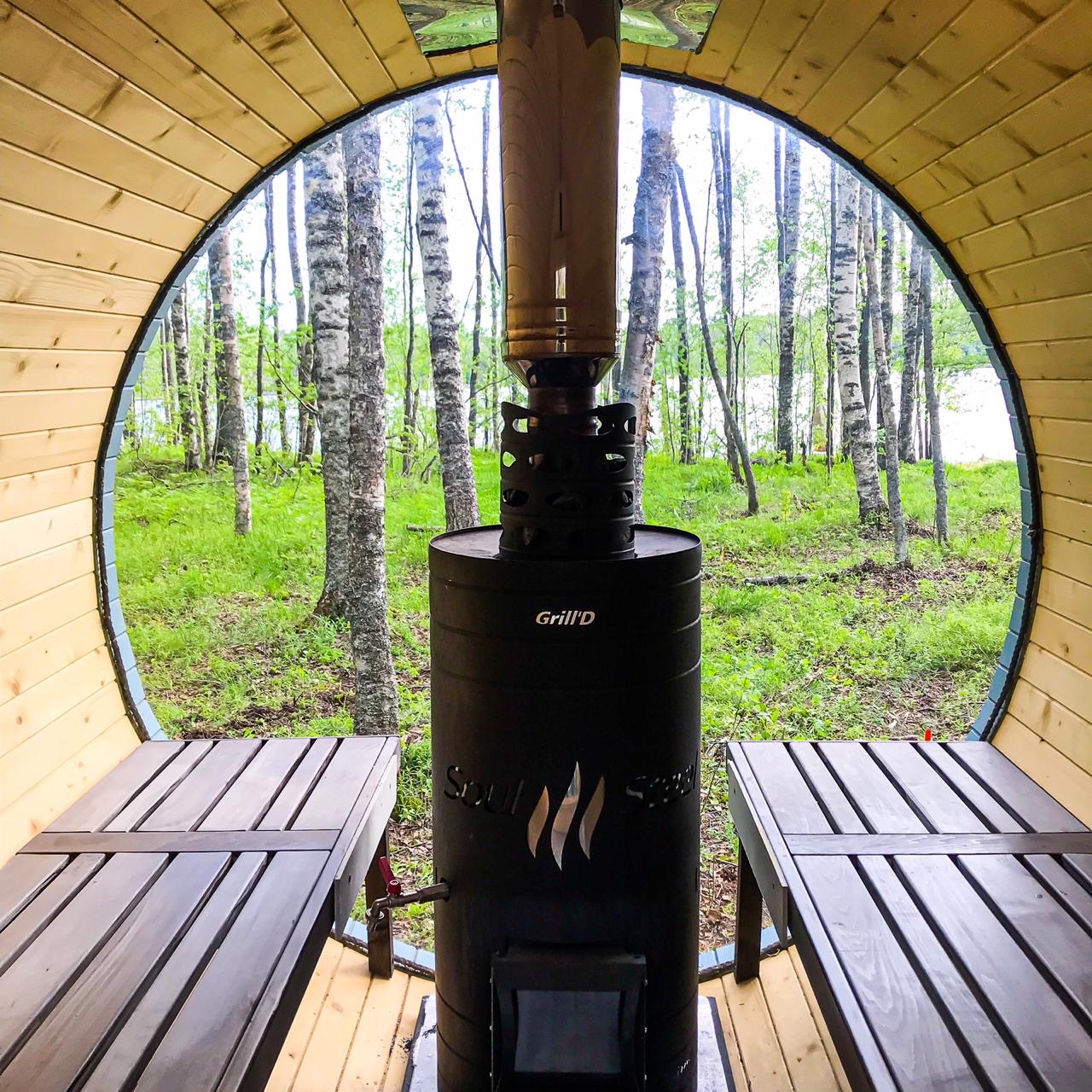 Отдельно стоящая панорамная баня-бочка - оплачивается отдельно.