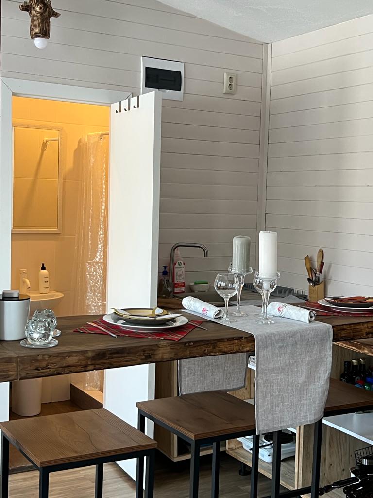 - оборудованная кухонная зона с посудомоечной машиной, большим холодильником, индукционной плитой, набором посуды и всеми необходимым мелочами