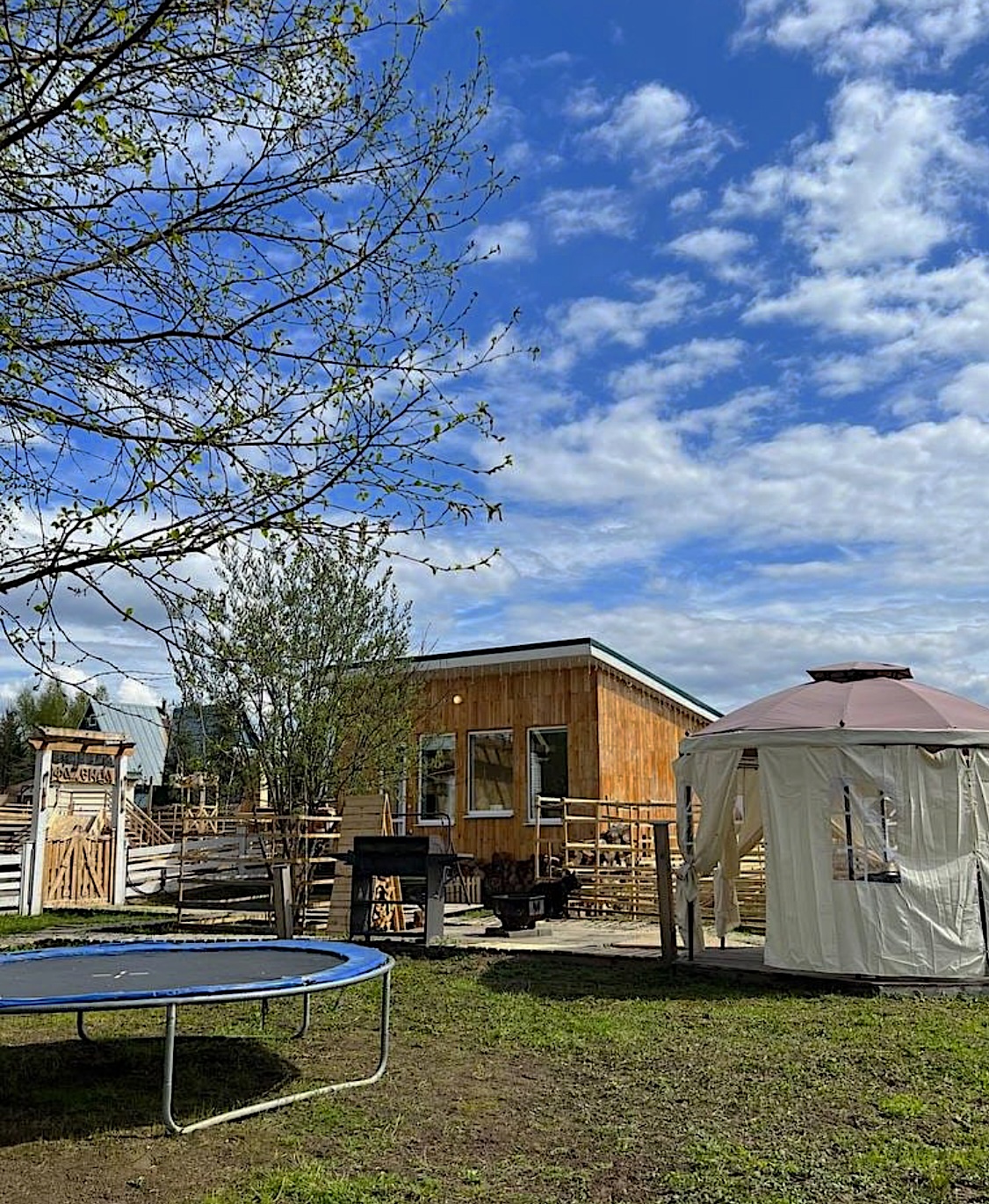 - батут для детей и взрослых - 2.4 метра на гостевой зоне и 4 метра на зоне фермы