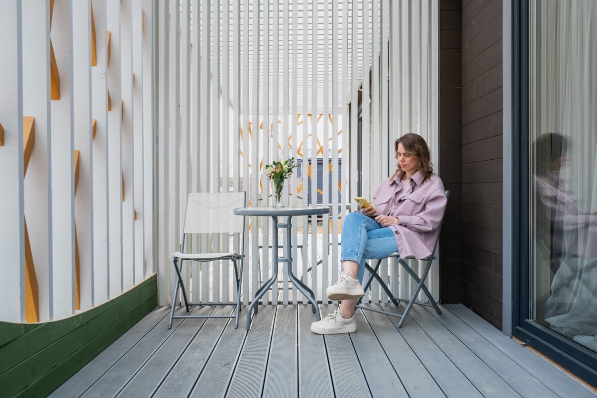 Таунхаус с кухней-гостиной, спальней и террасой.