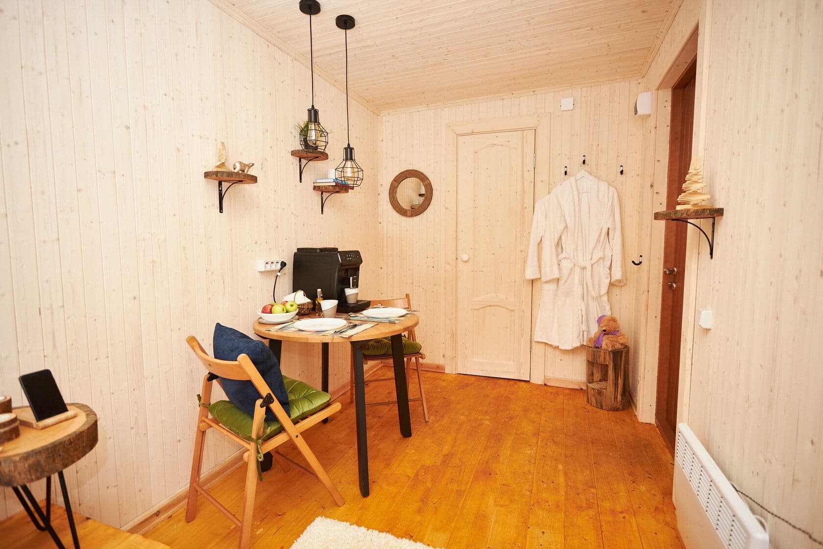 - есть возможность установить кофемашину в домик