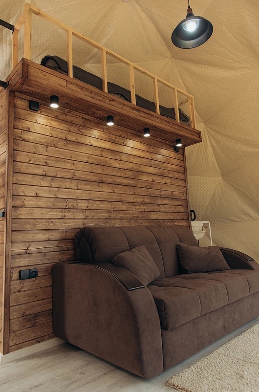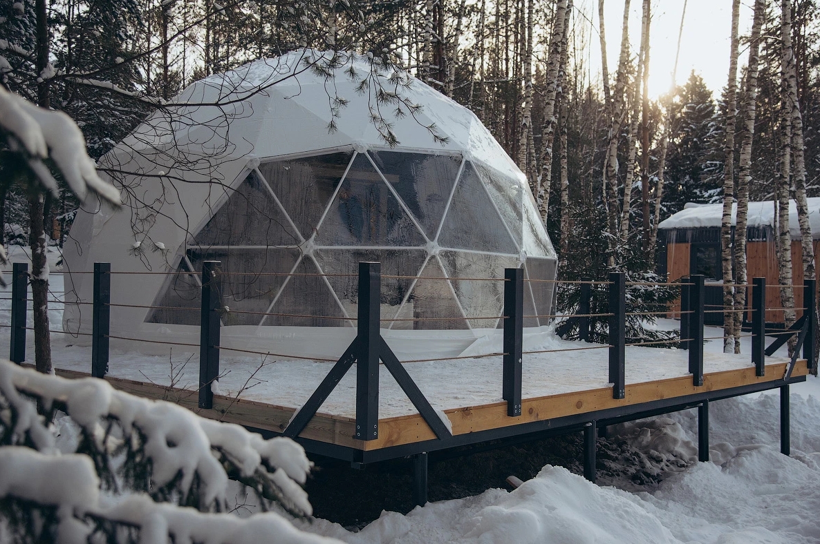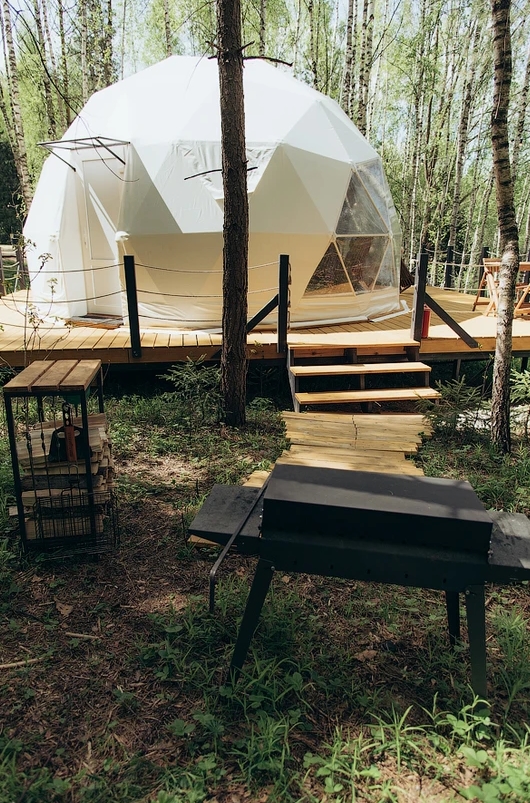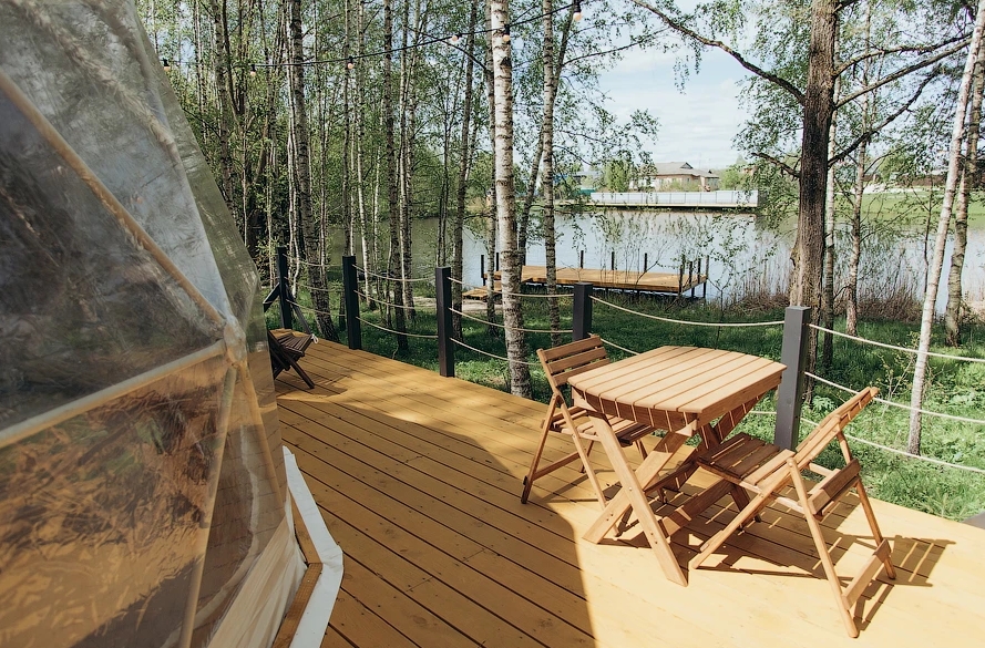 Уникальный номер в самом сердце леса с видом на озеро. Панорамные окна впускают больше света и воздуха во внутреннее пространство, создавая ощущение свободы и воздушности. Купольная форма и обтекаемые формы позволяют максимально приблизиться к природе, испытать новые ощущения и зарядится положительной энергетикой. Только вы, природа и тишина. Доступен в любое время года.