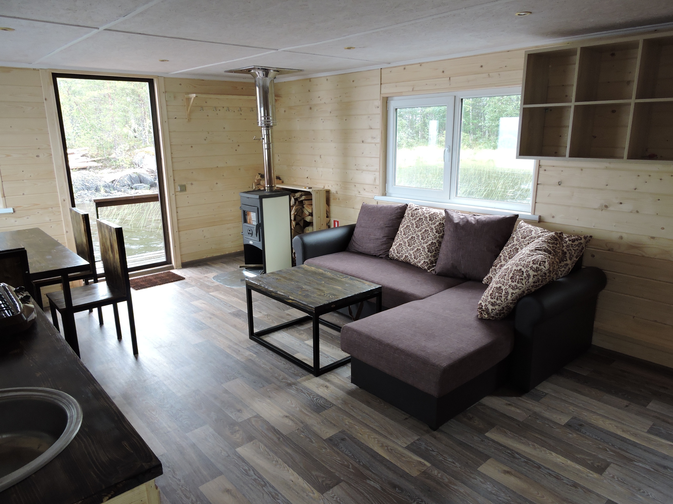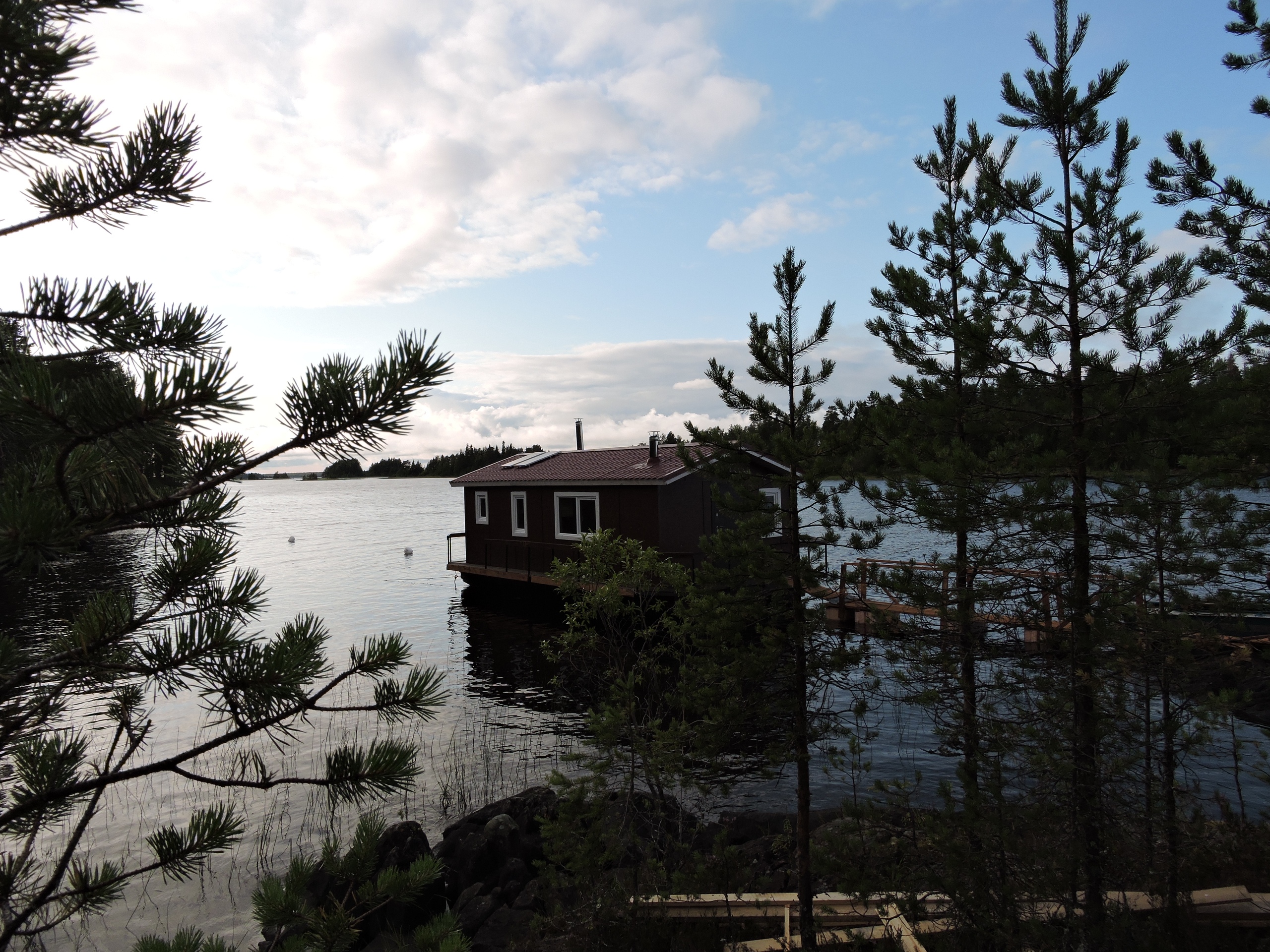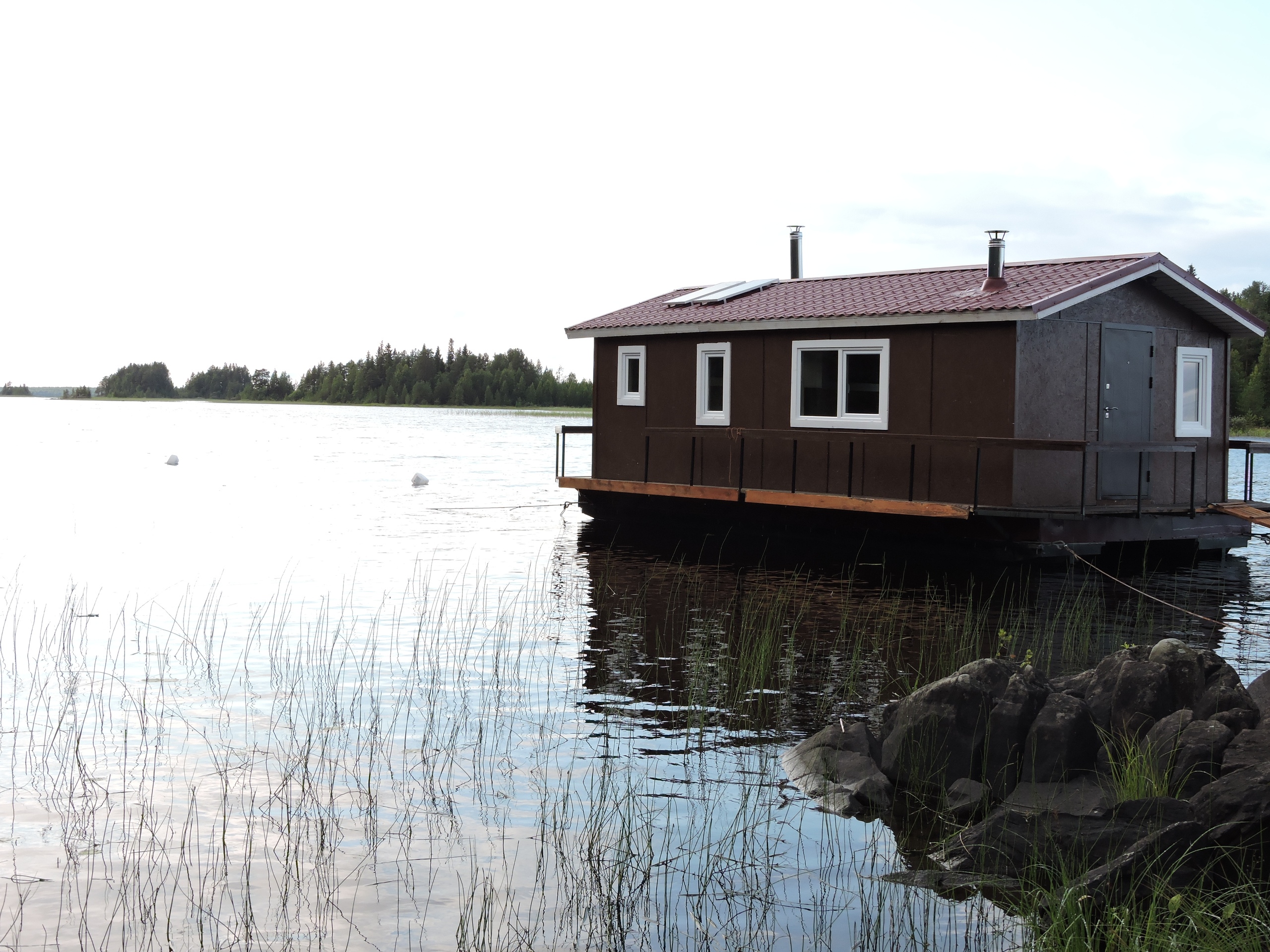 - на борту находится сауна с ароматными березовыми вениками, открыв дверь из которой вы можете окунуться и поплавать в озере;