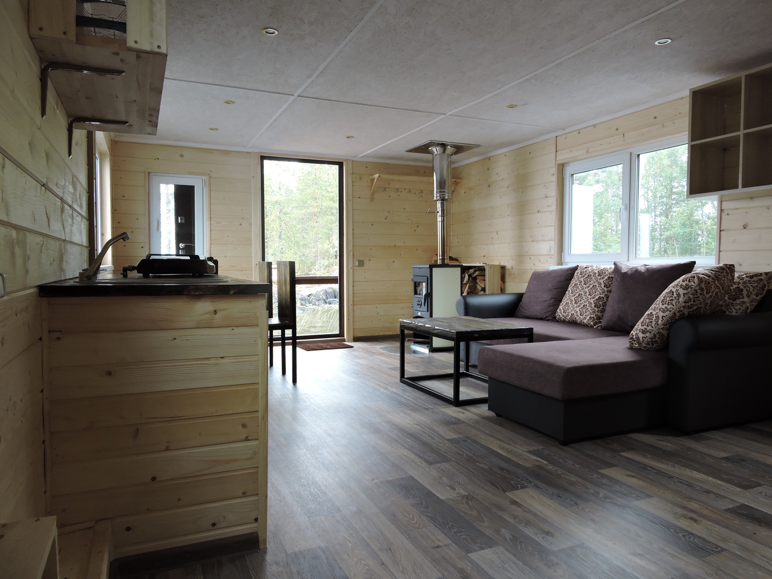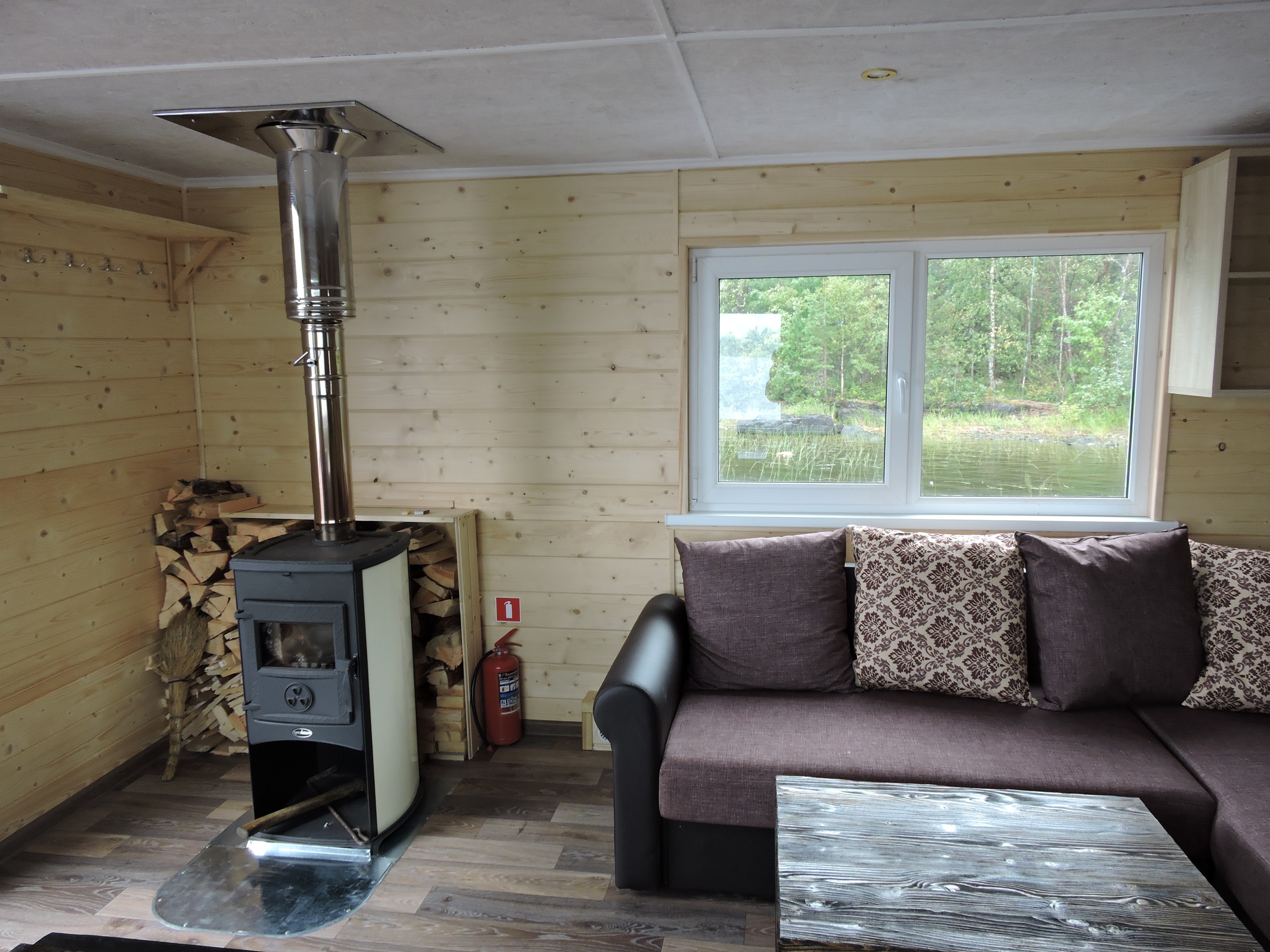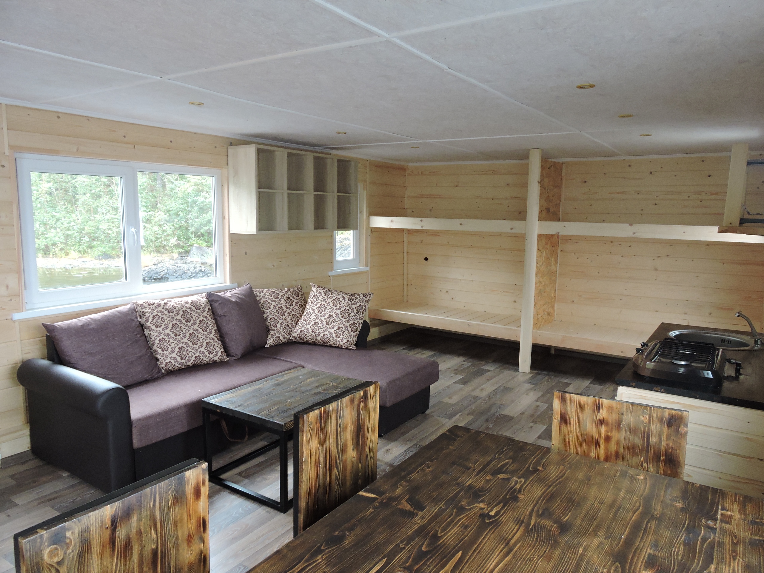 - на борту находится сауна с ароматными березовыми вениками, открыв дверь из которой вы можете окунуться и поплавать в озере;