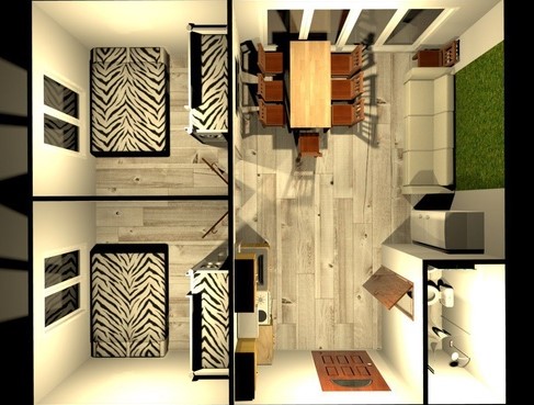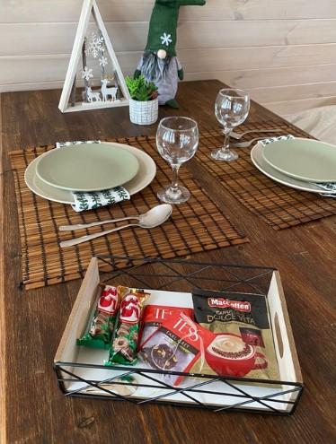- полноценная кухня с газовой плитой, микроволновкой, холодильником, всей посудой для приготовления и принятия пищи.