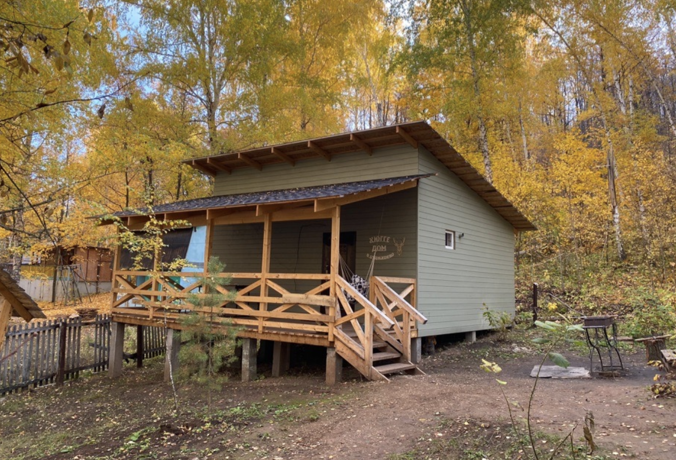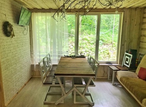 - мангальная зона у дома с решетками и шампурами (уголь с собой)