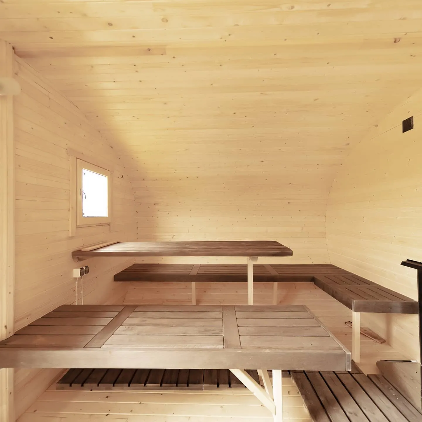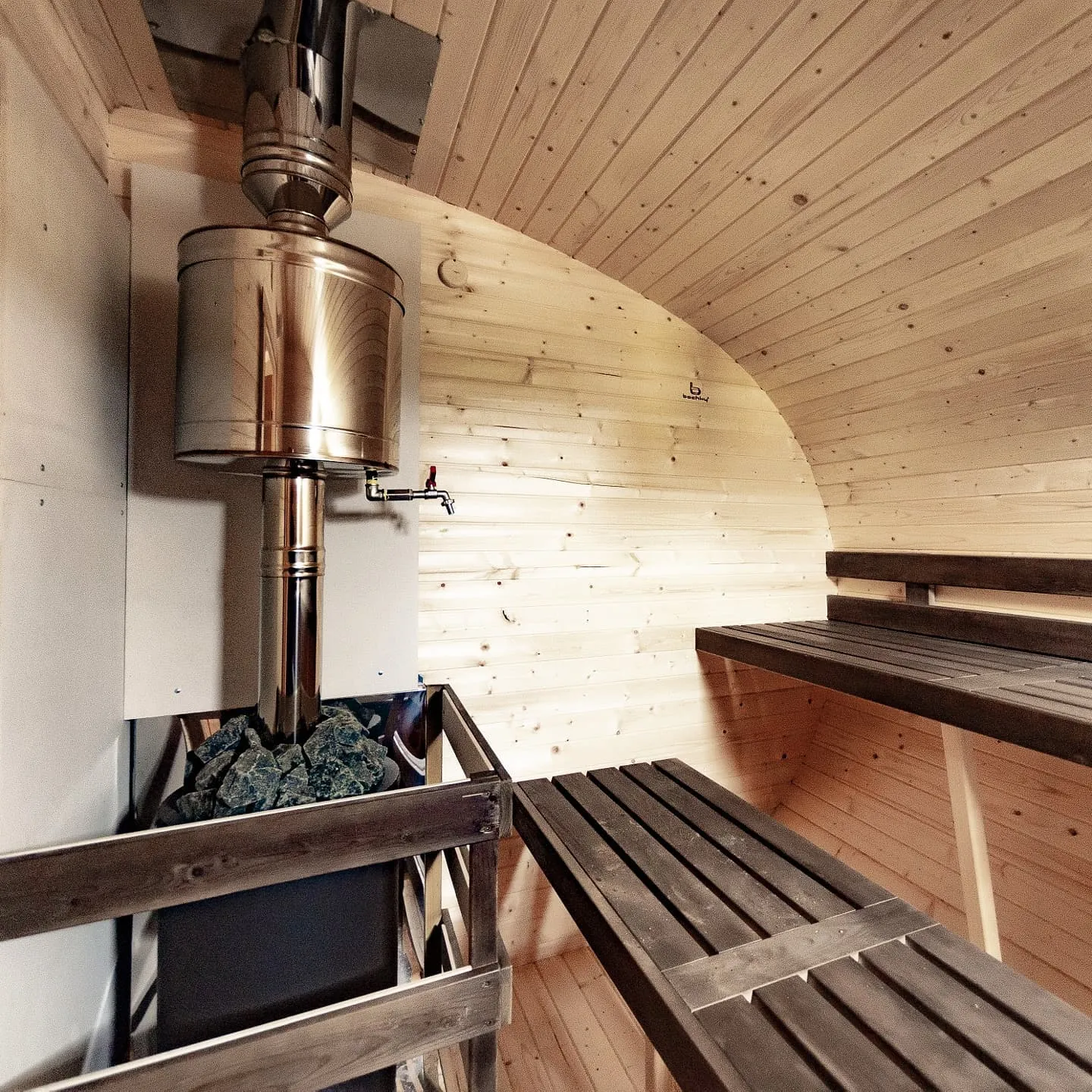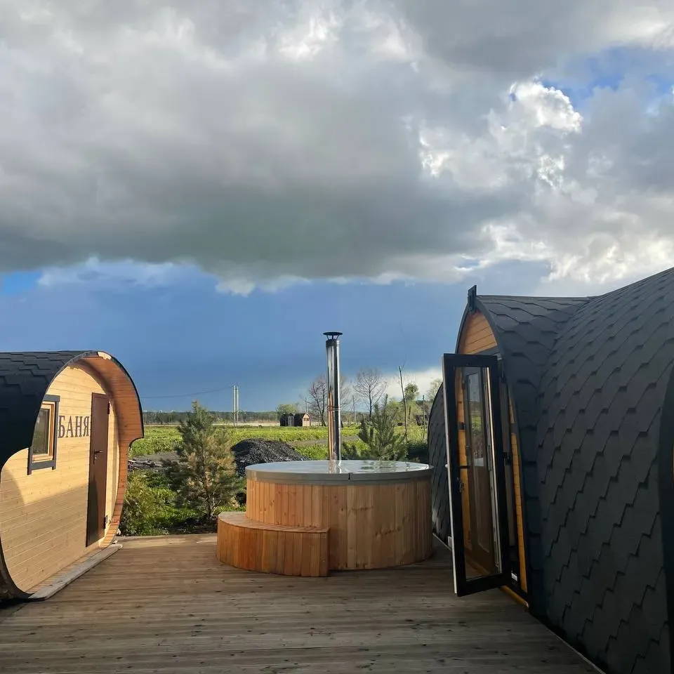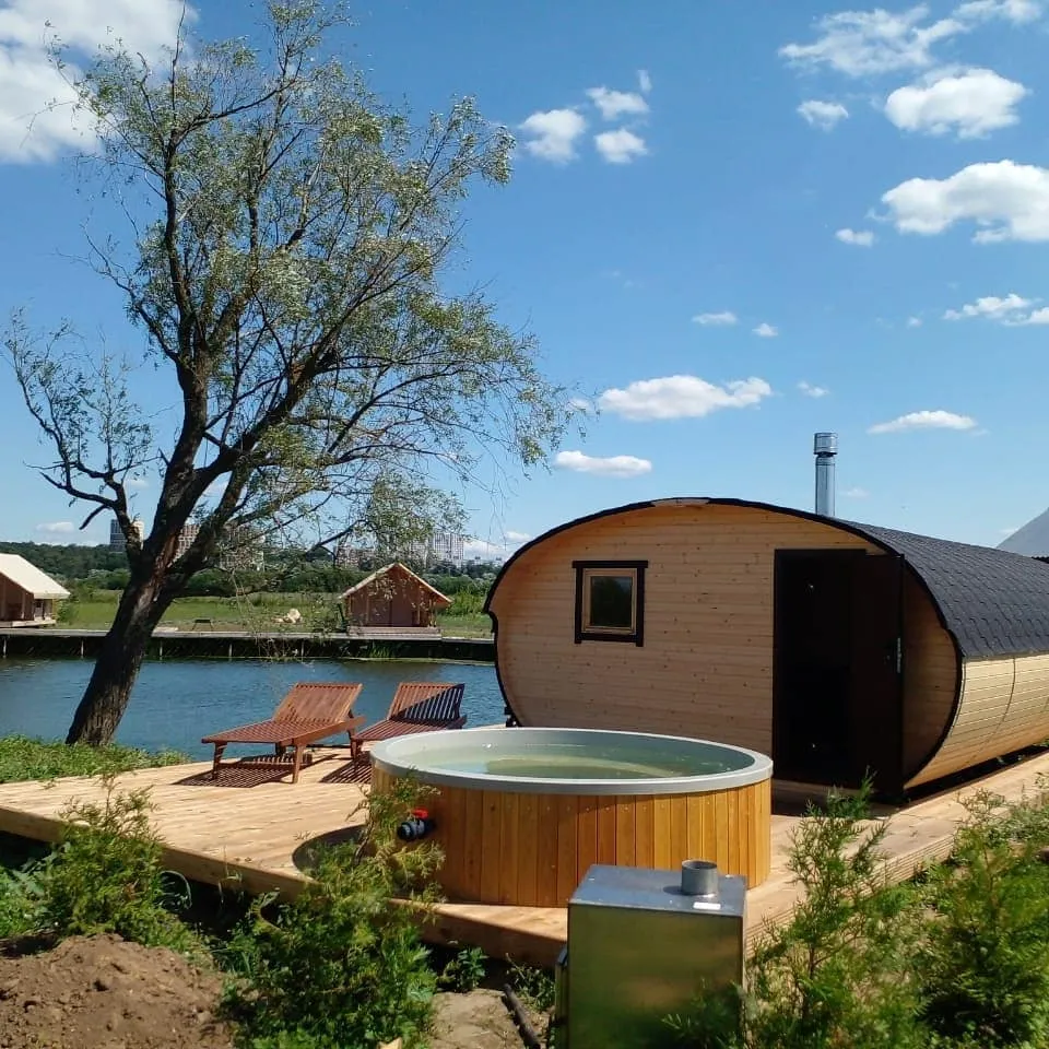 2. Баня с купелью. В Глэмпинге Остров Вы можете не только прекрасно провести время в уединенной атмосфере, но и попариться большой компанией в настоящей бане с купелью. Банные процедуры с оздоровительными парами на травяных сборах бережно очистят Ваш организм от шлаков, токсинов и снимут накопившуюся усталость, а купель с прохладной водой приведёт Вашу кожу в тонус и освежит.