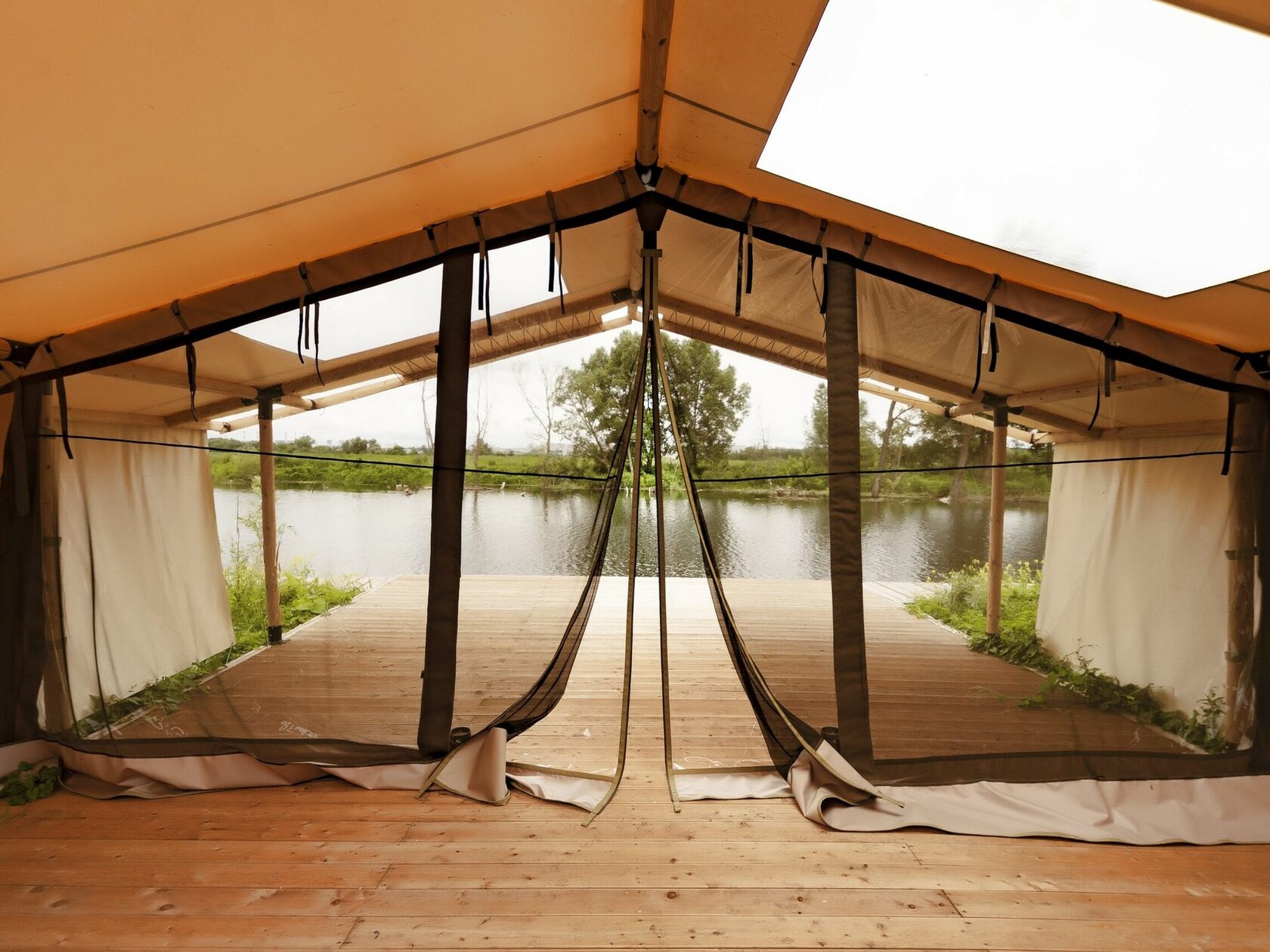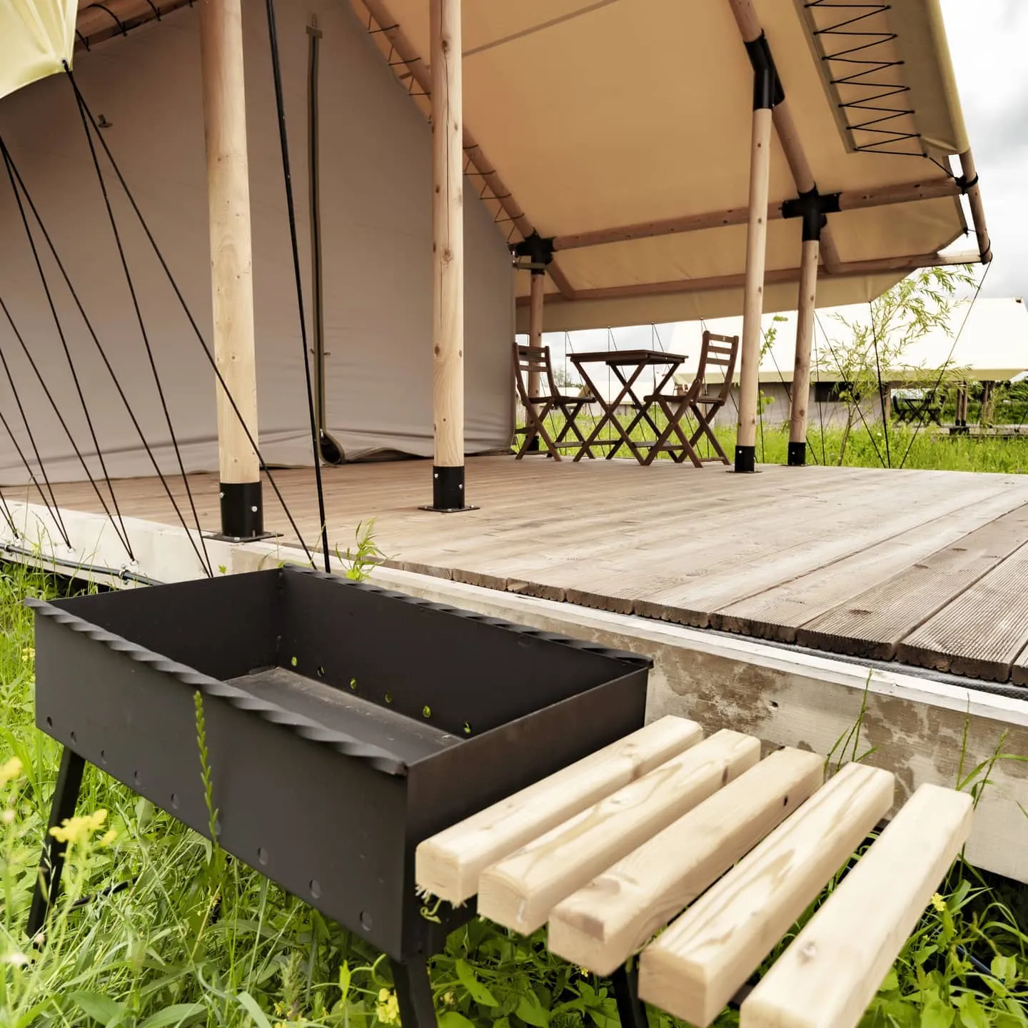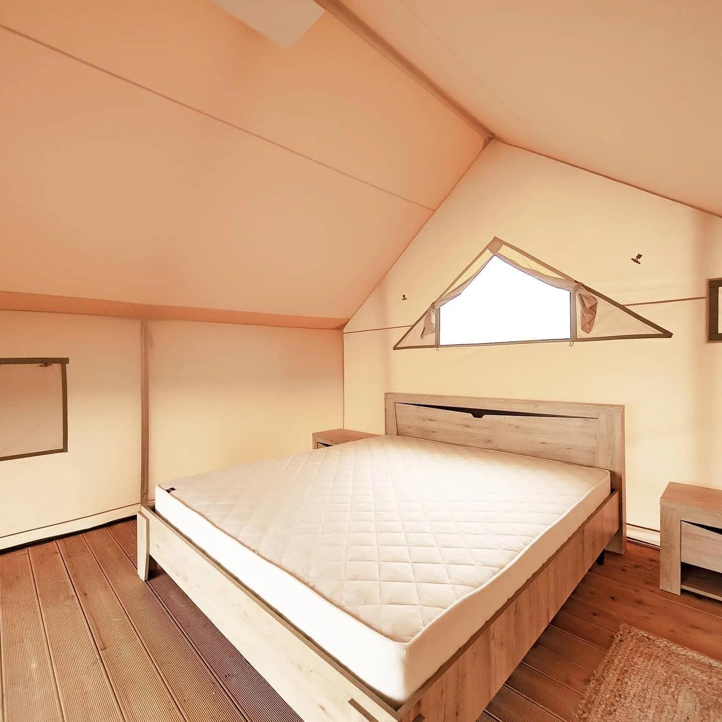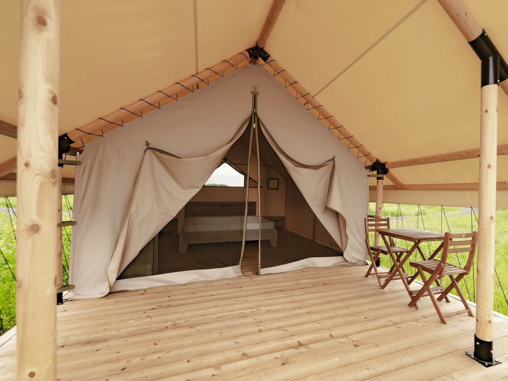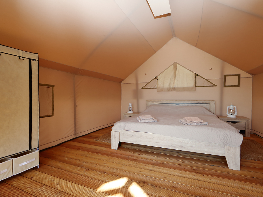 — комфортными кроватями: больше не нужно выбирать между жаждой приключений и комфортным сном — двуспальные или односпальные кровати с ортопедическим матрасом уже ждут Вас в каждом тенте;