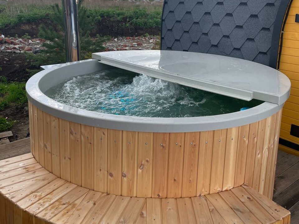 — подогреваемая купель: между бунгало и баней установлена купель, которая отапливается с помощью дровяной печи;