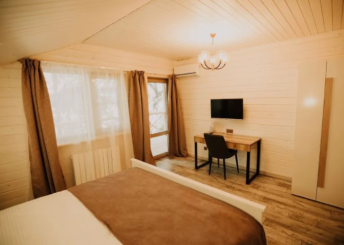 Уютный номер в загородном отеле с видом на лес будет отличным выбором для тех, кто хочет в полной мере прочувствовать красоту нашего живописного уголка. Наслаждайтесь отдыхом и восстанавливайте силы! Номера отеля находятся на втором этаже и прекрасно подойдут для пар, желающих сбежать от суеты большого города, а также семьям с малышом до 3 лет (предоставляем кроватку). Страховой возвратный депозит при аренде стандартного номера загородного отеля - 2500 руб.
