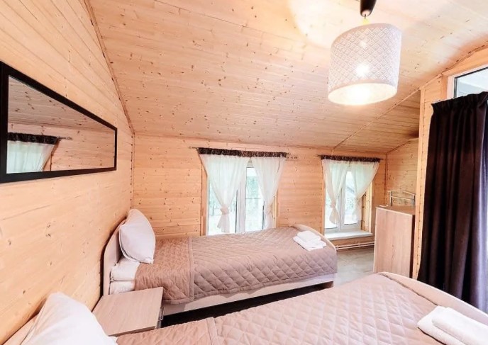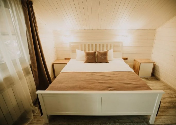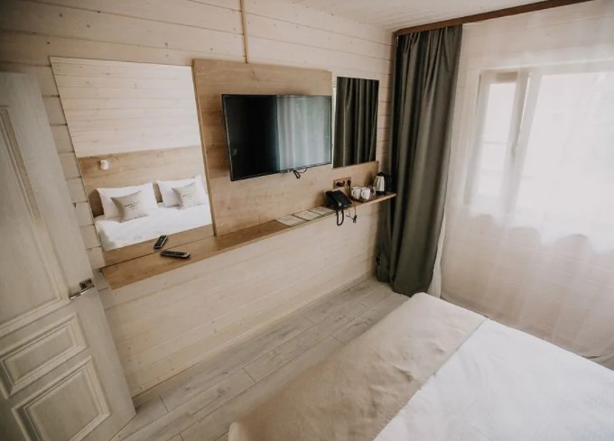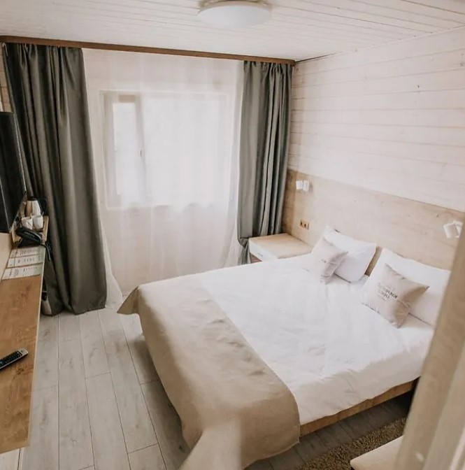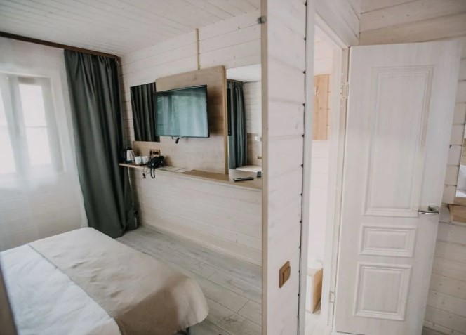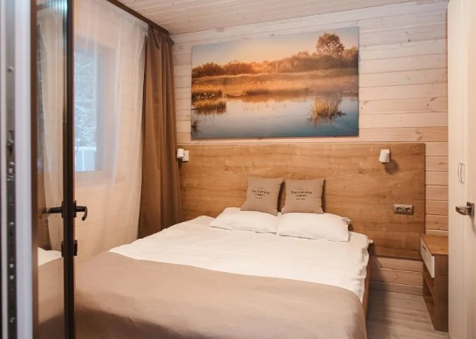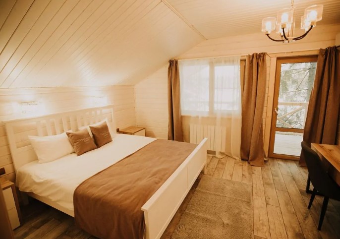 Загородный отель на Пасторском озере. Интерьер в светлых оттенках, выполненный в эко-стиле, неповторимый аромат дерева, умиротворяющий вид из окна и отдельный вход: в этом номере отеля Вы будете чувствовать себя так, словно живете в отдельном коттедже. Погрузитесь в атмосферу расслабления: только вы, ваш спутник, тишина и уют. Номер загородной гостиницы также подходит для семей с малышами до 3 лет (предоставляем кроватку). Страховой возвратный депозит при аренде двухместного номера в загородной гостинице - 2500 руб.