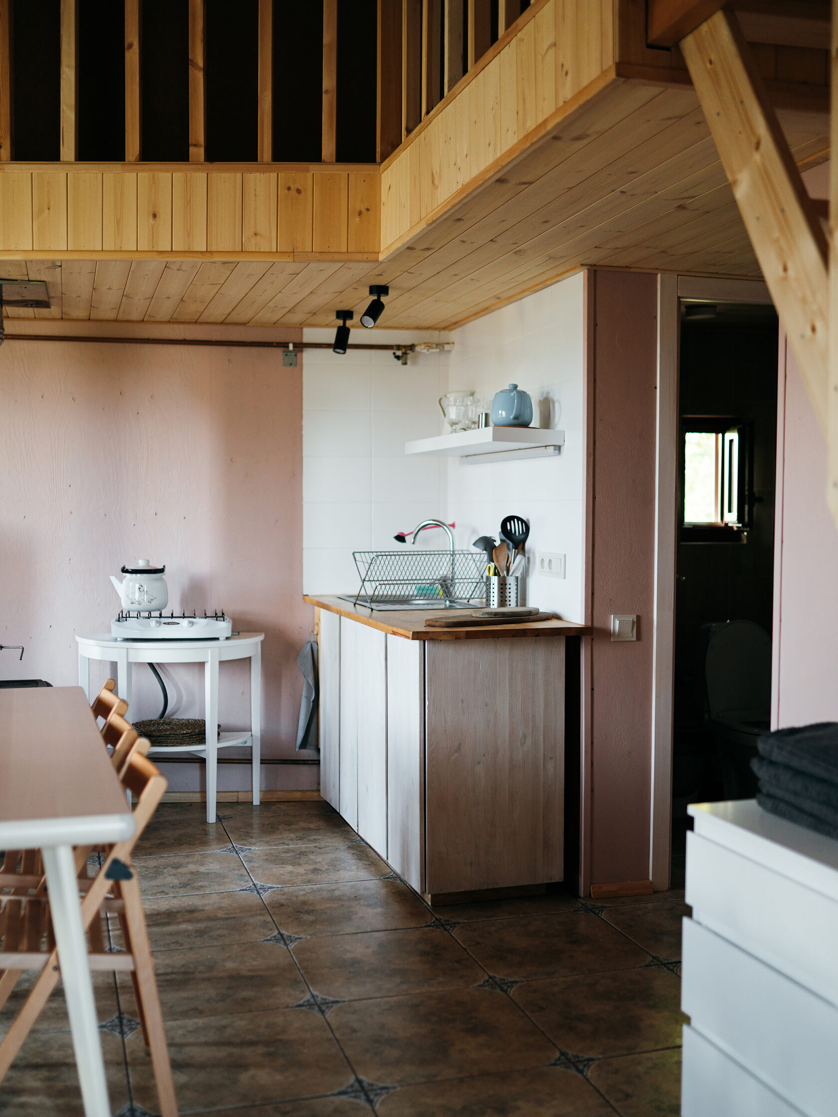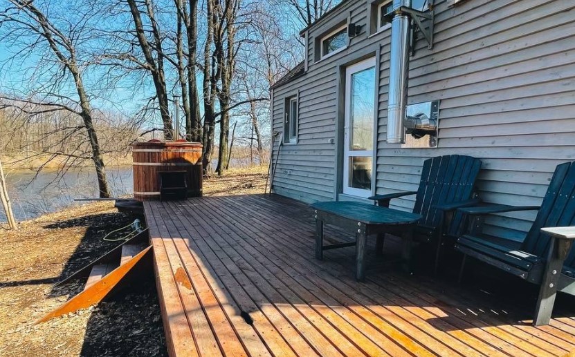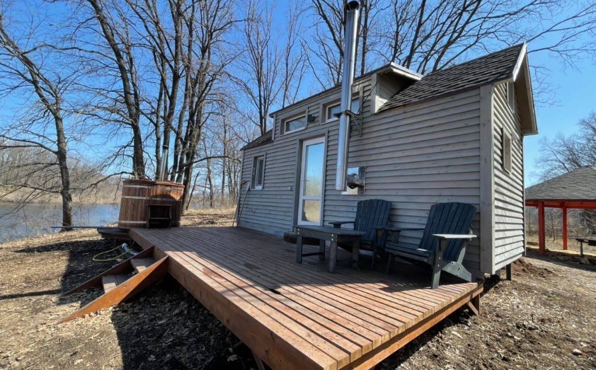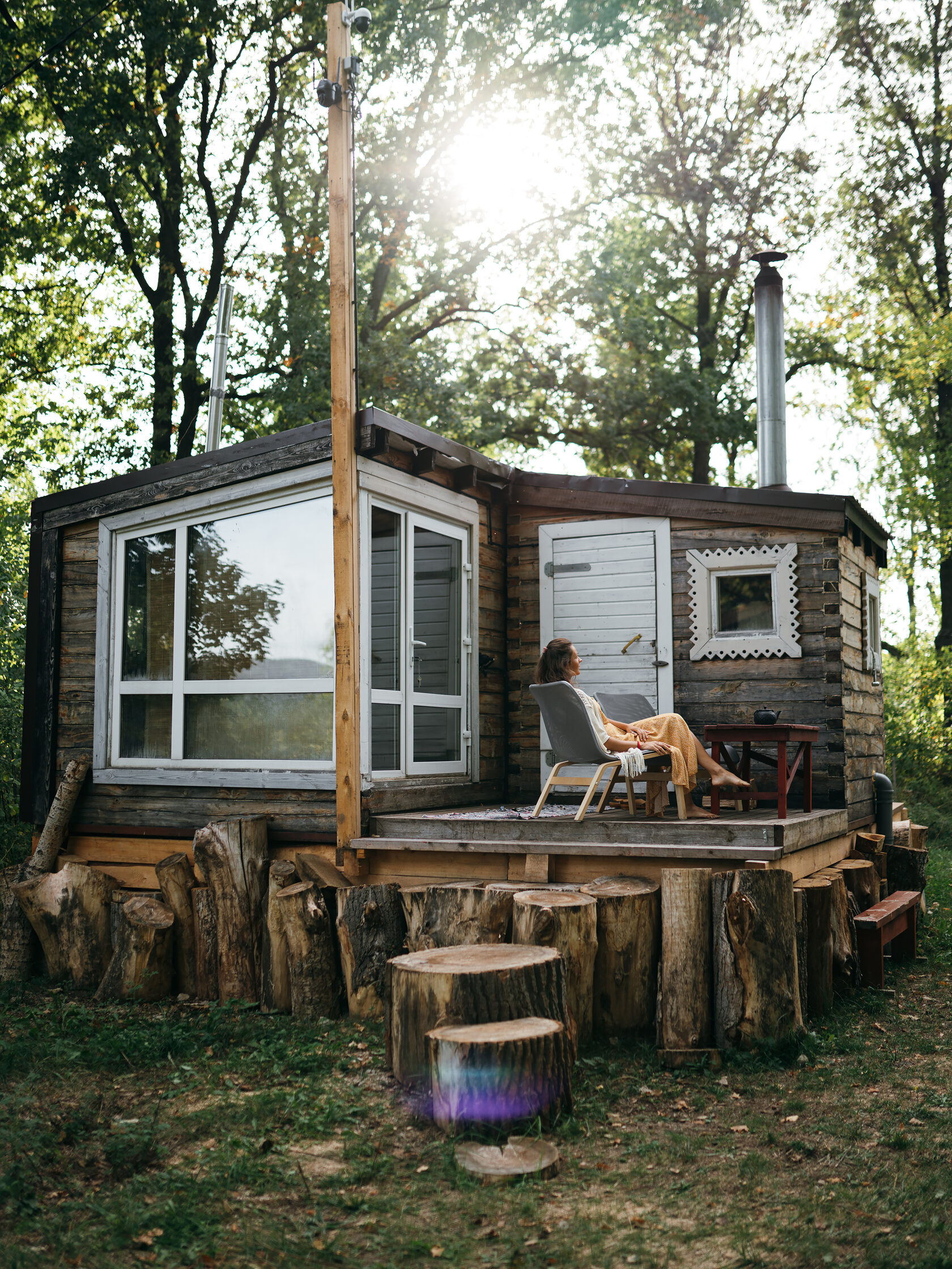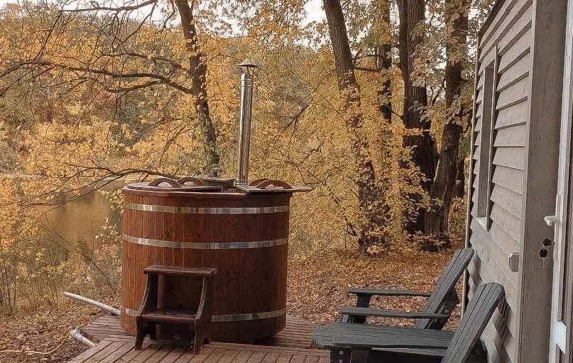 Это маленький стильный домик в духе Генри Дейвида Торо. Вы можете почувствовать себя поэтом, живущим в уединении в лесу. Или с подружкой. Но в отличие от жилища американского поэта, здесь есть холодильник, горячая и холодная вода в комнате, к домику пристроена баня, туалет находится непосредственно в ней, вход в баню и туалет идёт через терассу и улицу, надеемся это добавит вам ощущения приключений, а не разочарований, что вы встретились с настоящей лесной стихией и дух приключений не оставит вас вдали от города.