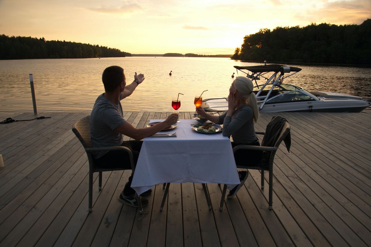 3. Накрываем романтические ужины на пирсе. Белые скатерти, бокал вина, свечи и лучшие закаты в Подмосковье.