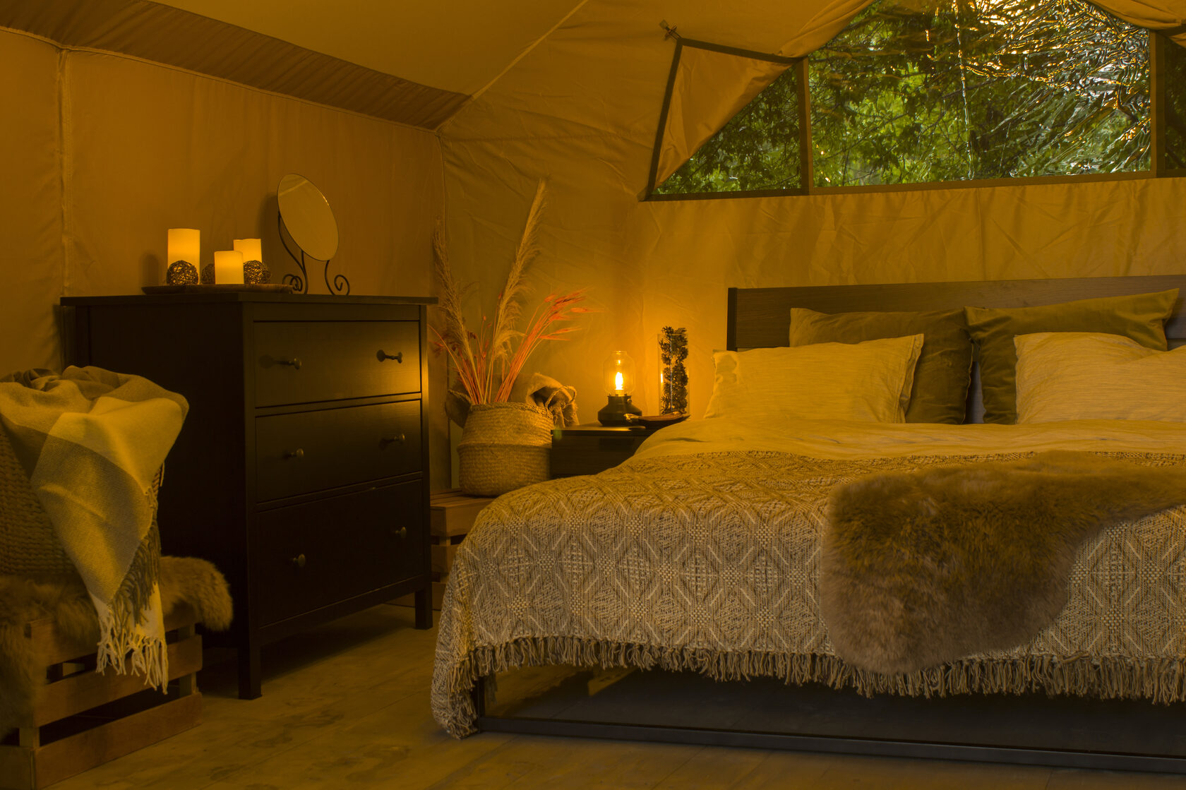 1. Комфортные сафари-тенты с великолепным панорамным видом – это полноценный номер пятизвёздочного отеля в самом сердце леса.