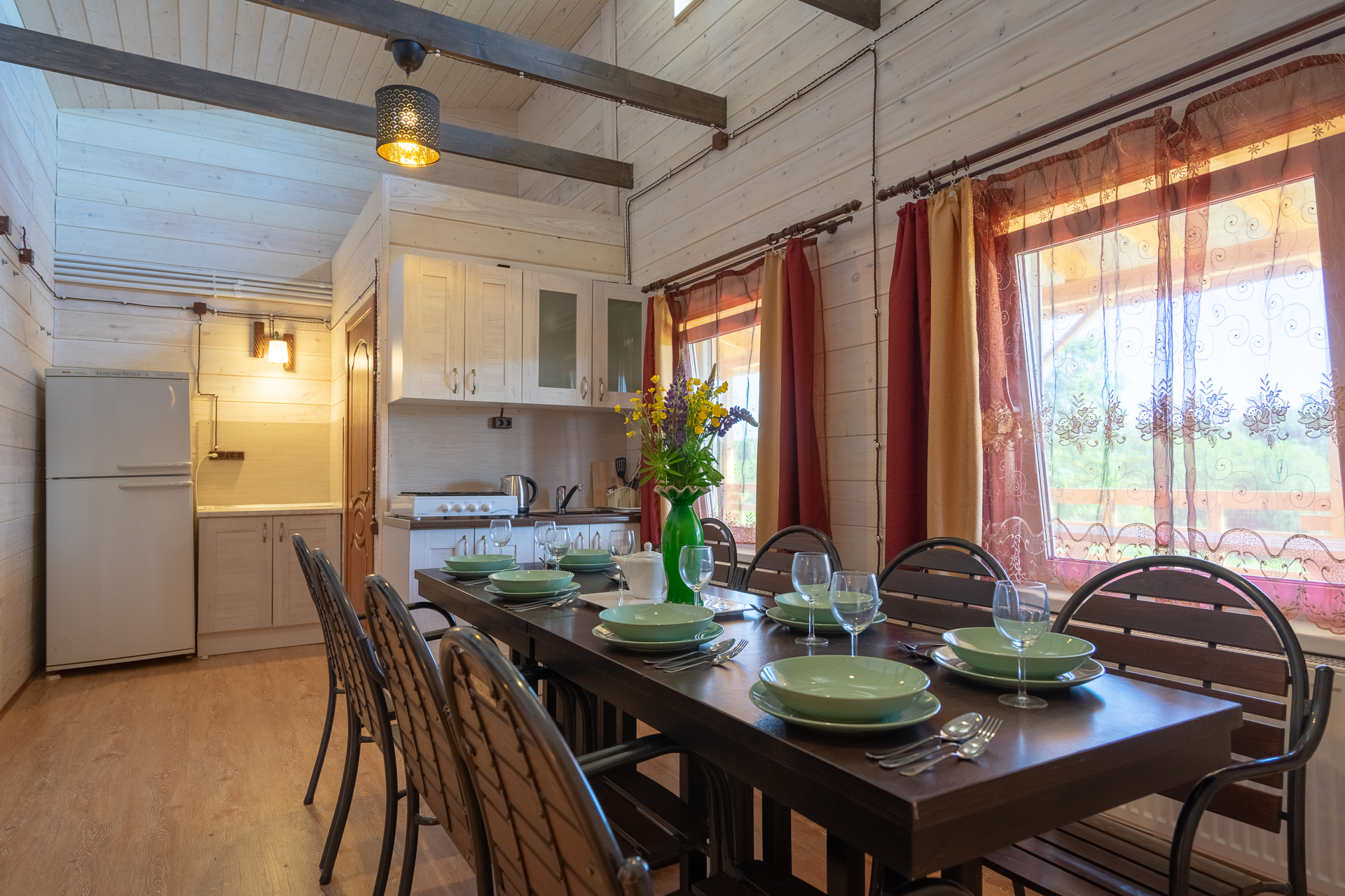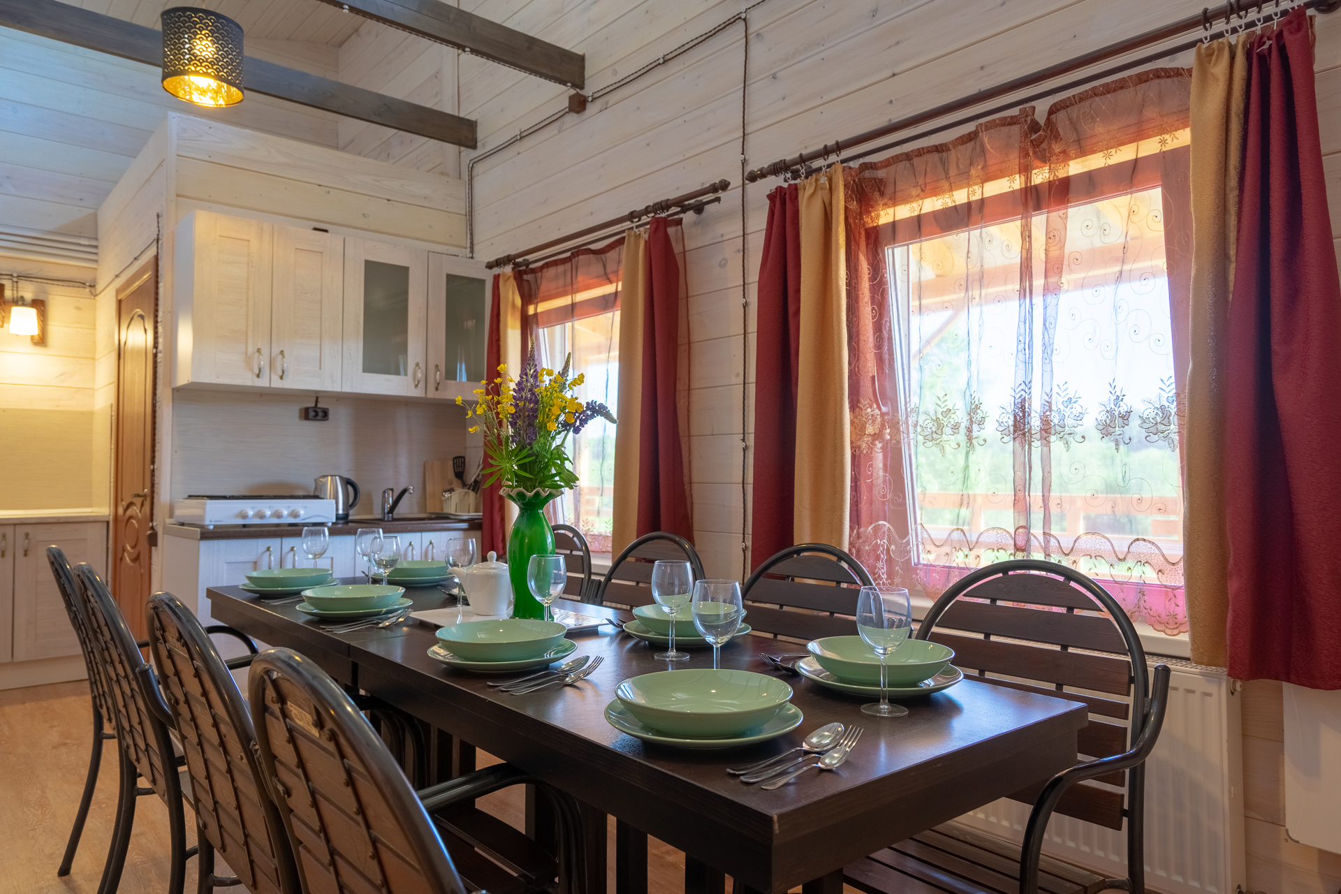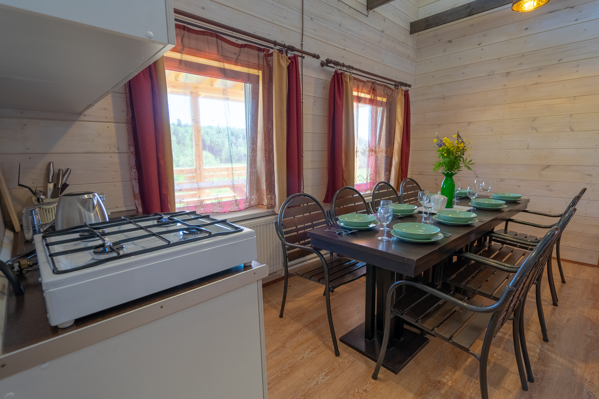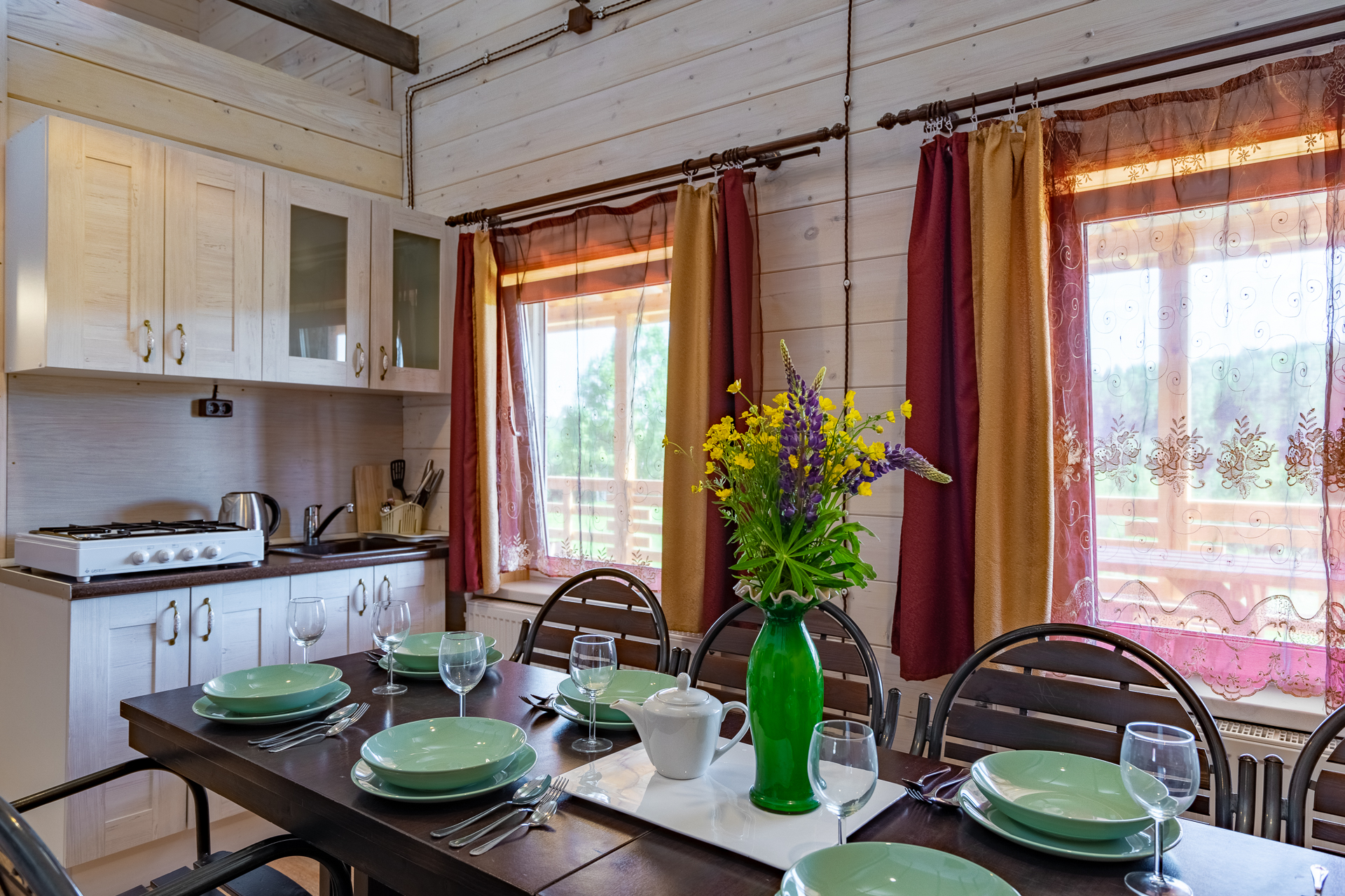 - В каждом доме кухня, рядом с домом зона барбекю