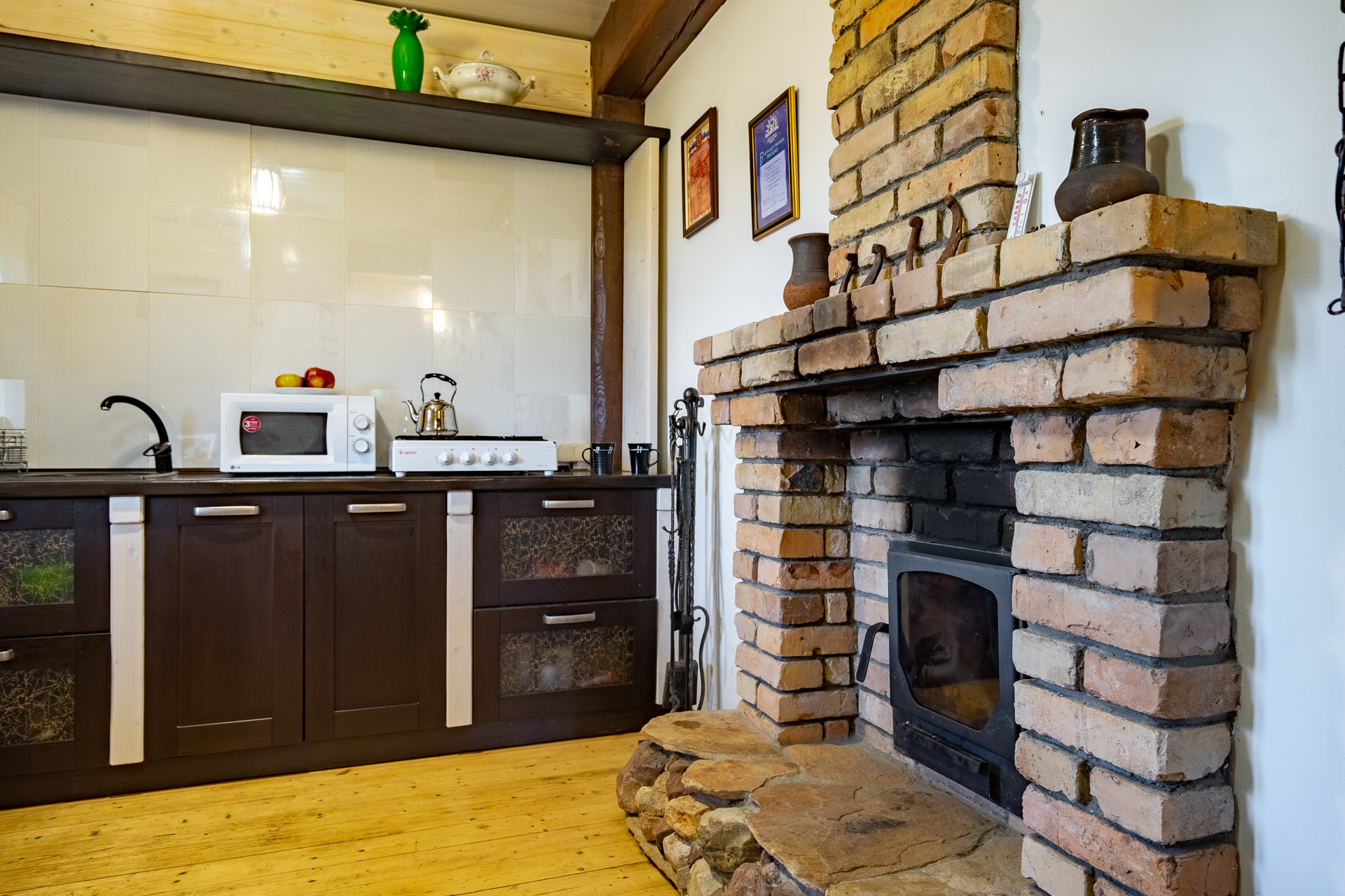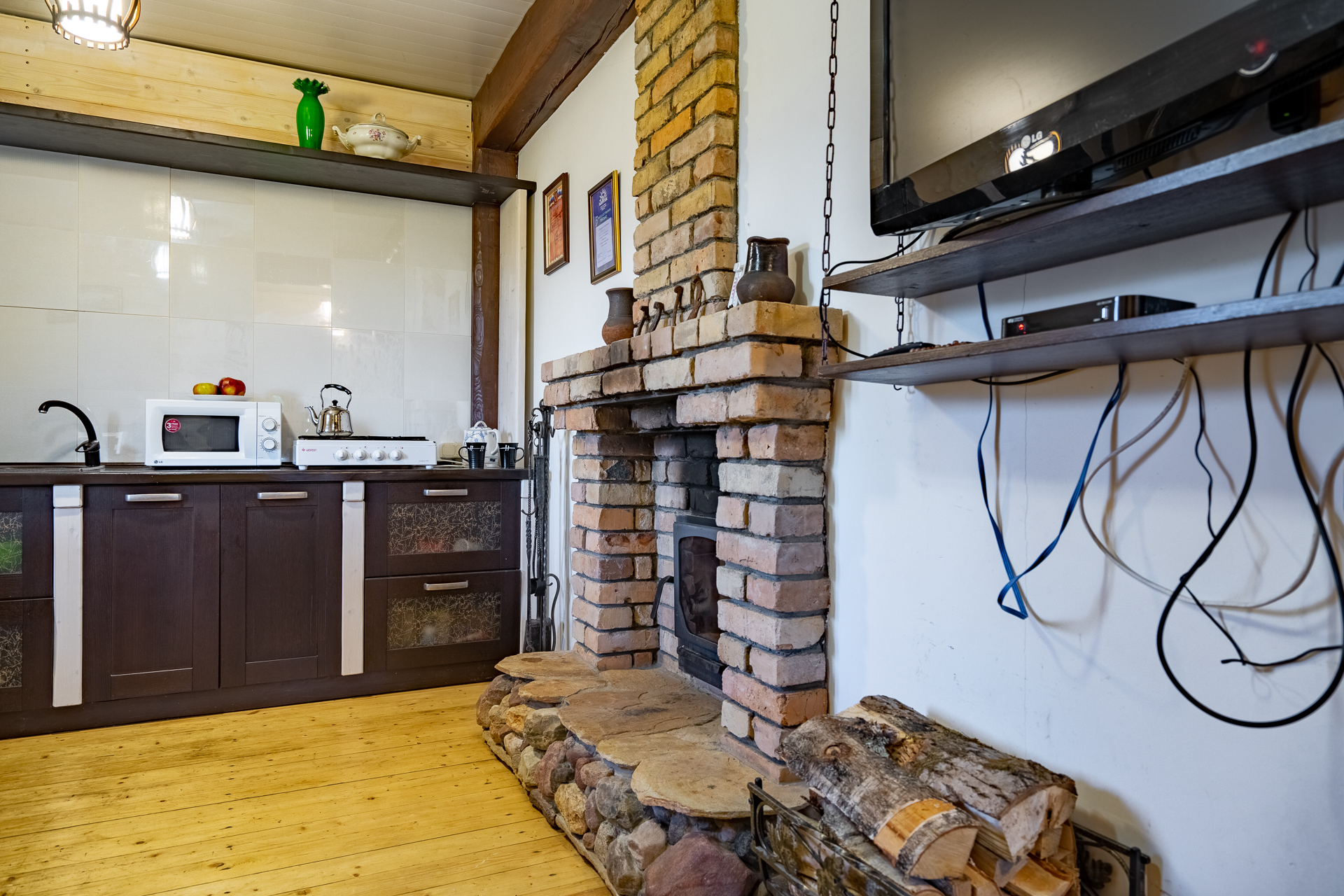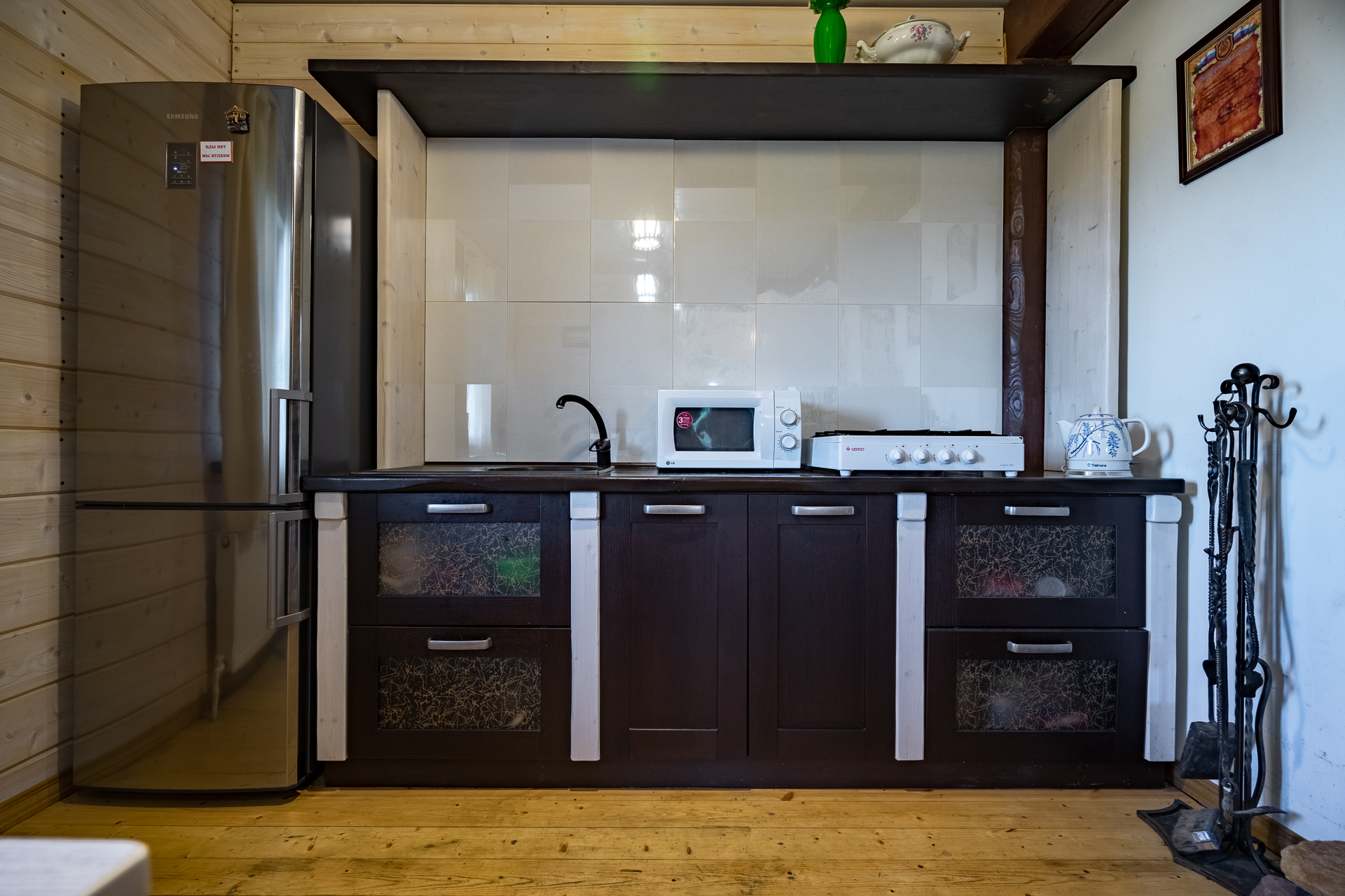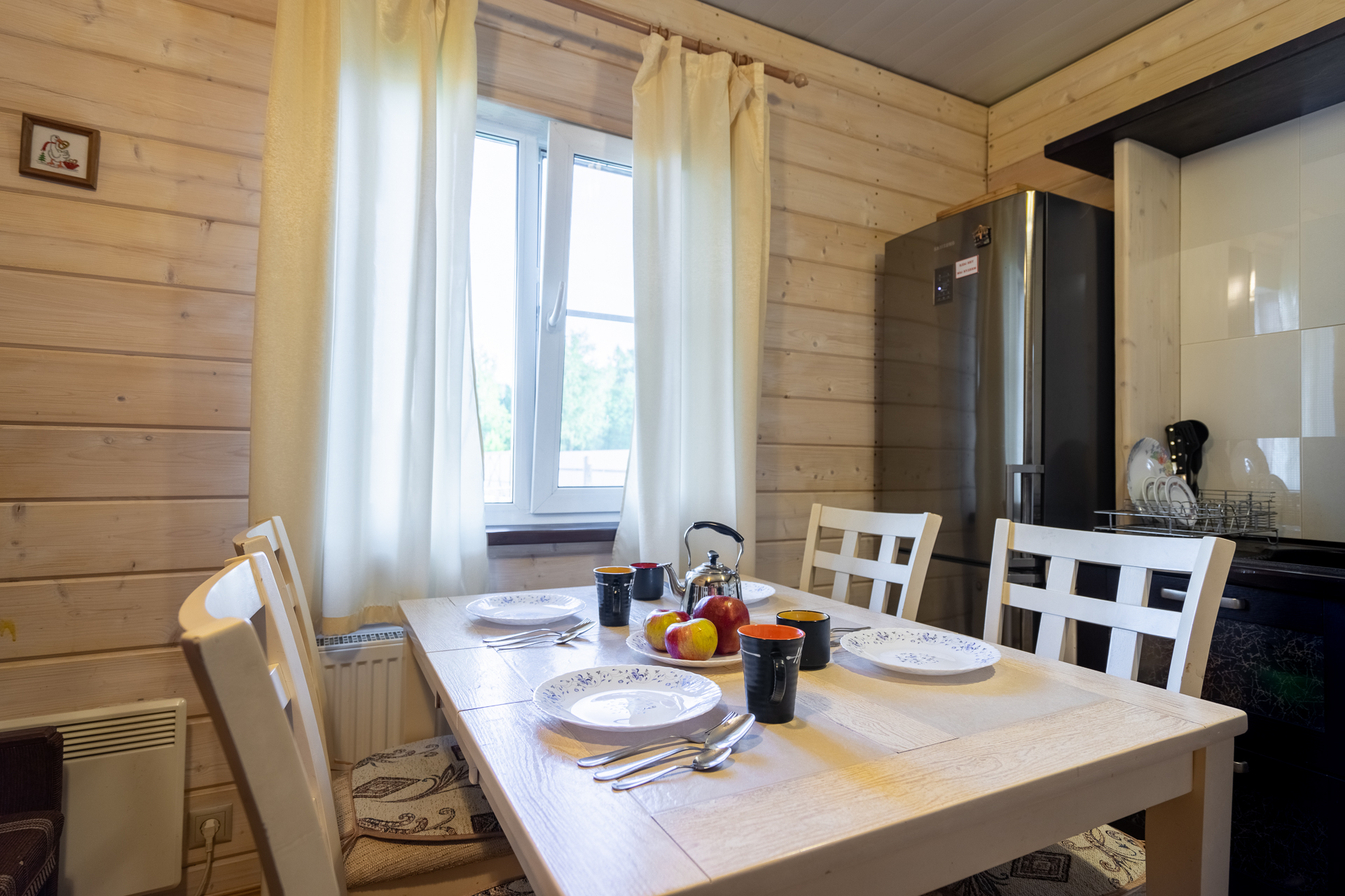 - В каждом доме кухня, рядом с домом зона барбекю
