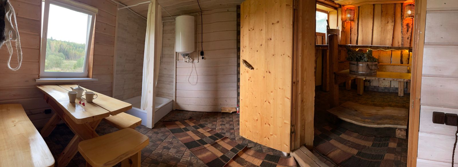 2 спальни, кухня-гостиная с диваном, с/у, баня расположена в доме,