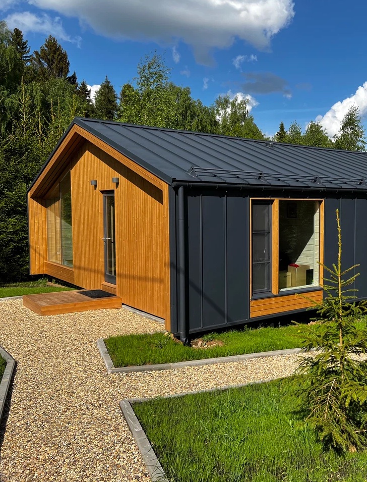 - Баня с панорамными окнами и дровяной печью