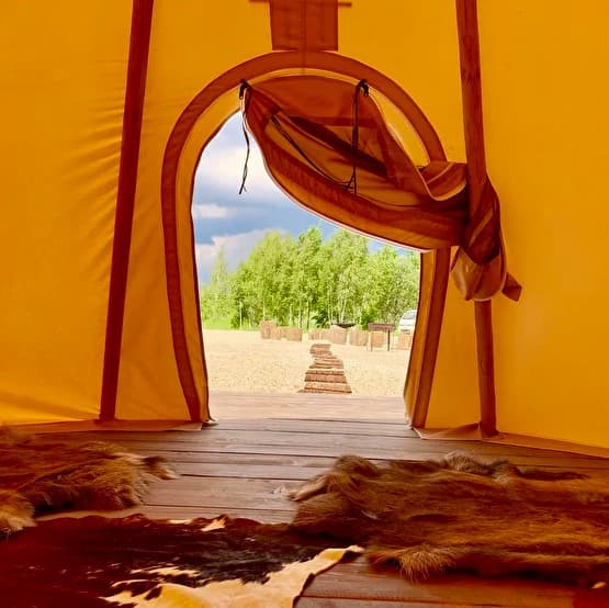 В Глэмпинге "Рузская Аляска" вы сможете не только насладиться единением с природой, походной романтикой, но и отдохнуть в уютных, благоустроенных типи. Типи это древнее индийское жилище.Этнический колорит наших типи создает неповторимую атмосферу.