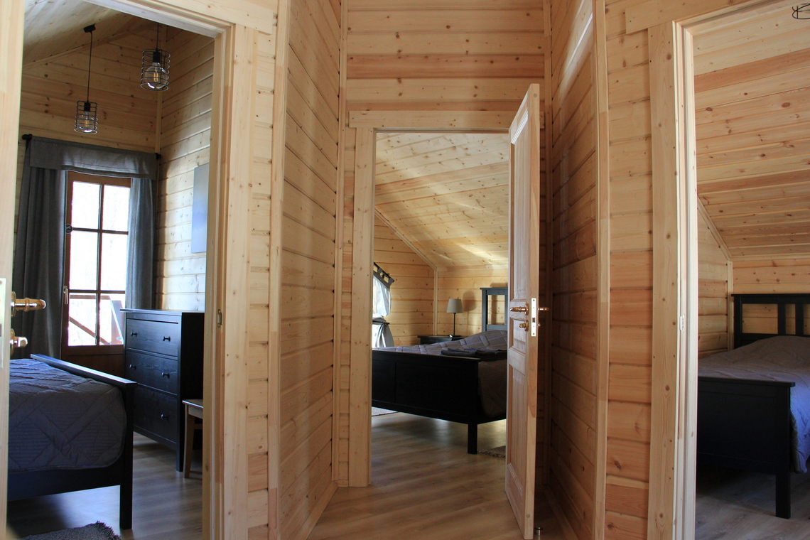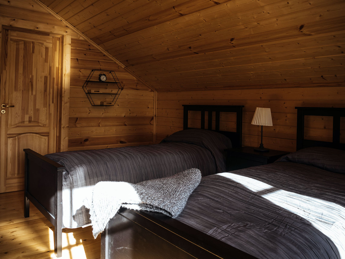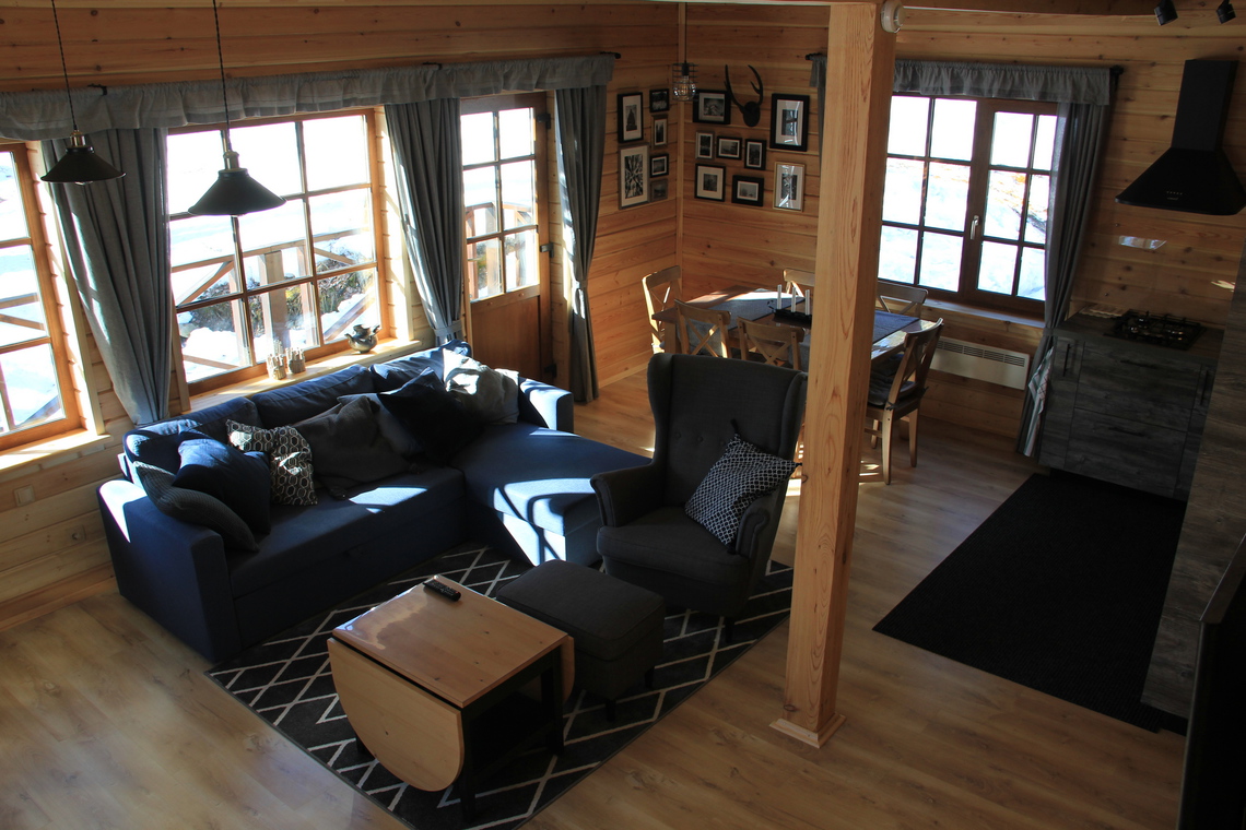 — вместимость шале до 8-ми человек: 6 основных мест в спальнях на втором этаже + 2 дополнительных места в гостиной на первом этаже;