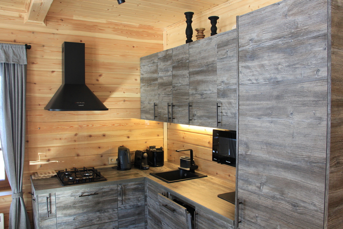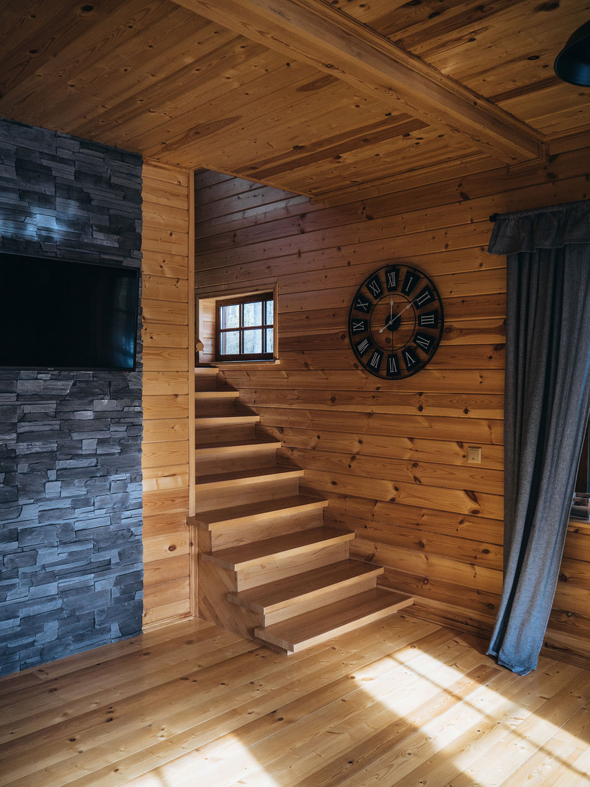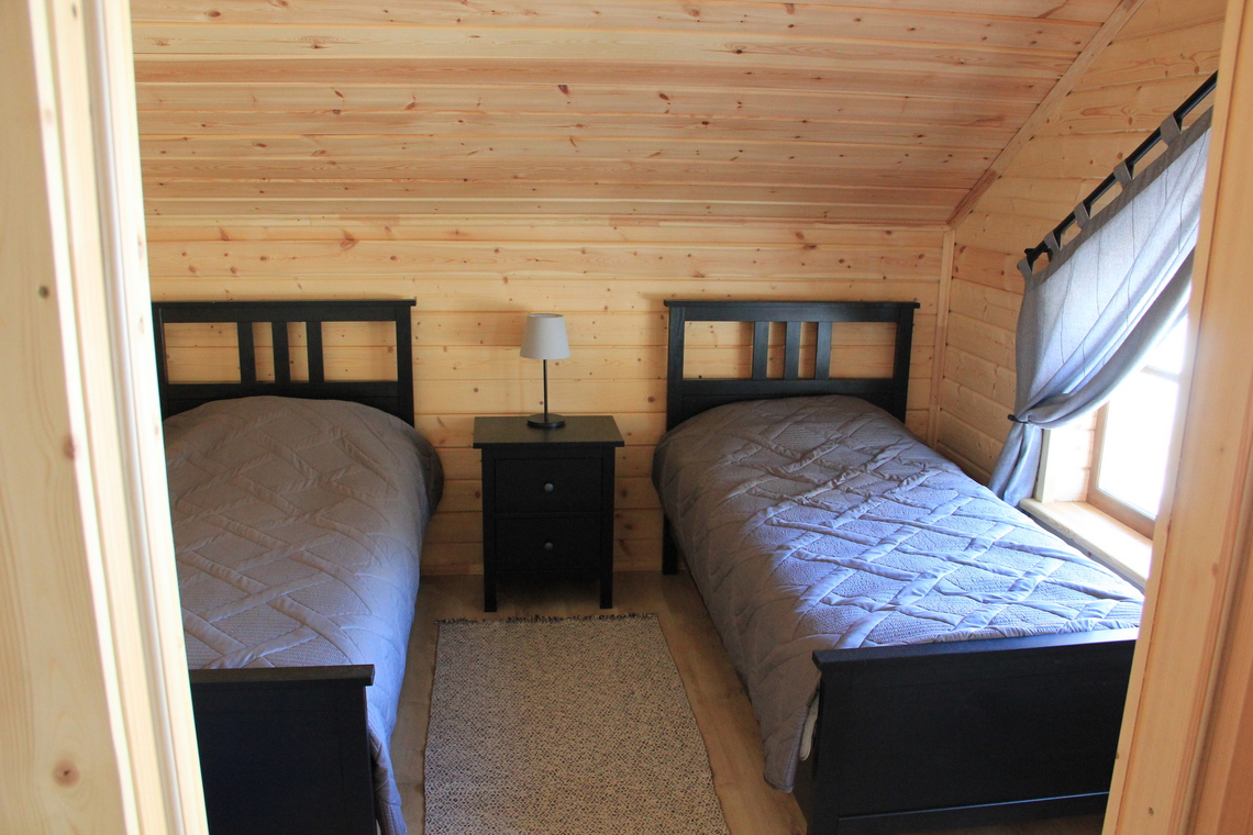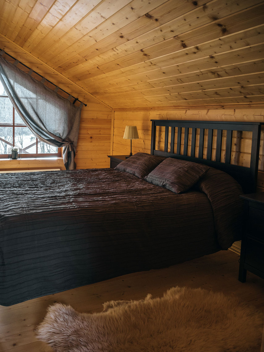 — вместимость шале до 8-ми человек: 6 основных мест в спальнях на втором этаже + 2 дополнительных места в гостиной на первом этаже;