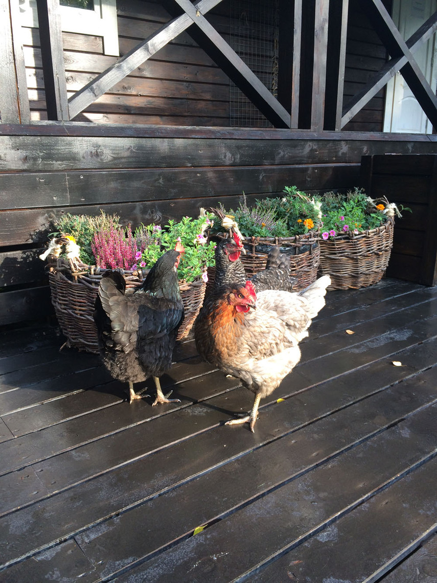 - "Скотный двор". Курочки и гуси гуляют по всей территории нашей базы, создавая атмосферу настоящей деревни.