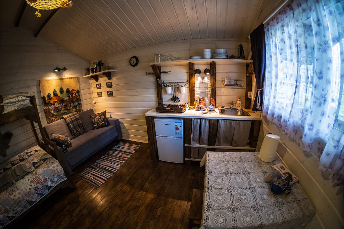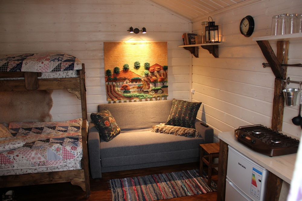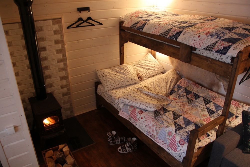 — вместимость домика до 5-ти человек: 3 основных спальных мест и 2 дополнительных;