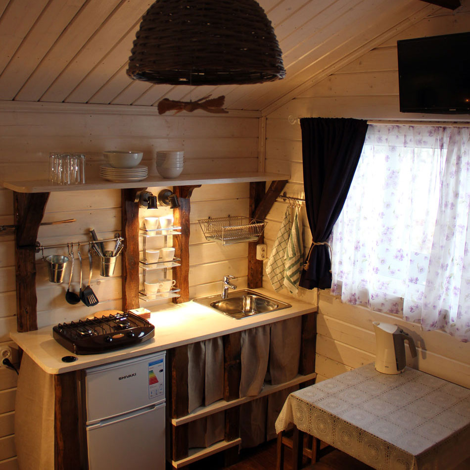 — для приготовления любимых блюд и мытья посуды в домики проведена холодная и горячая вода.
