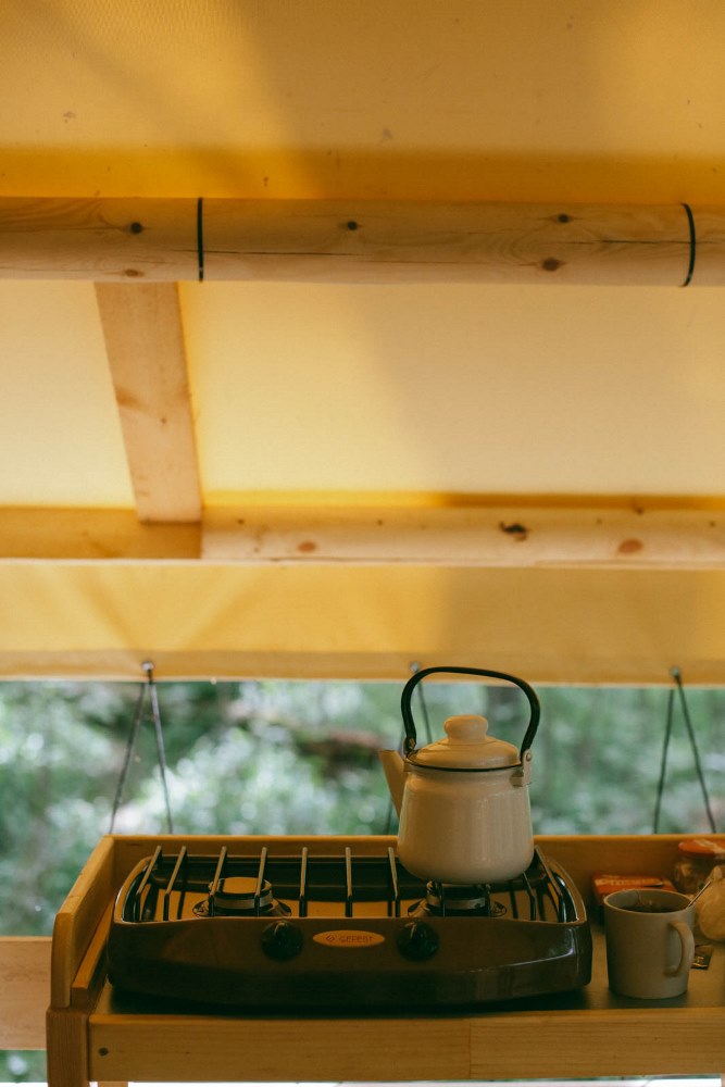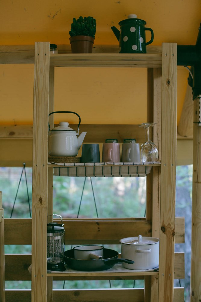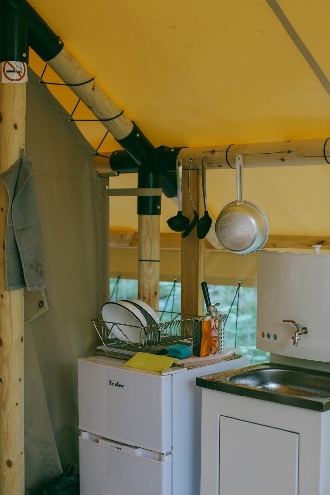 — палатки оборудованы мини-кухней, где есть все для приготовления завтрака, обеда и ужина: