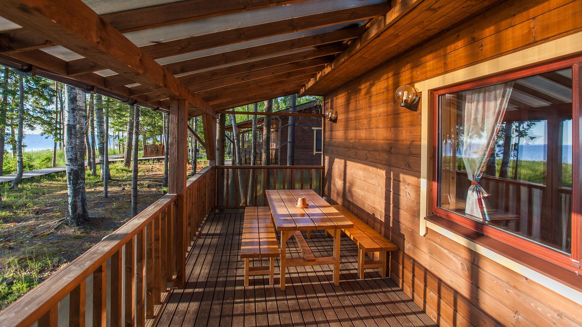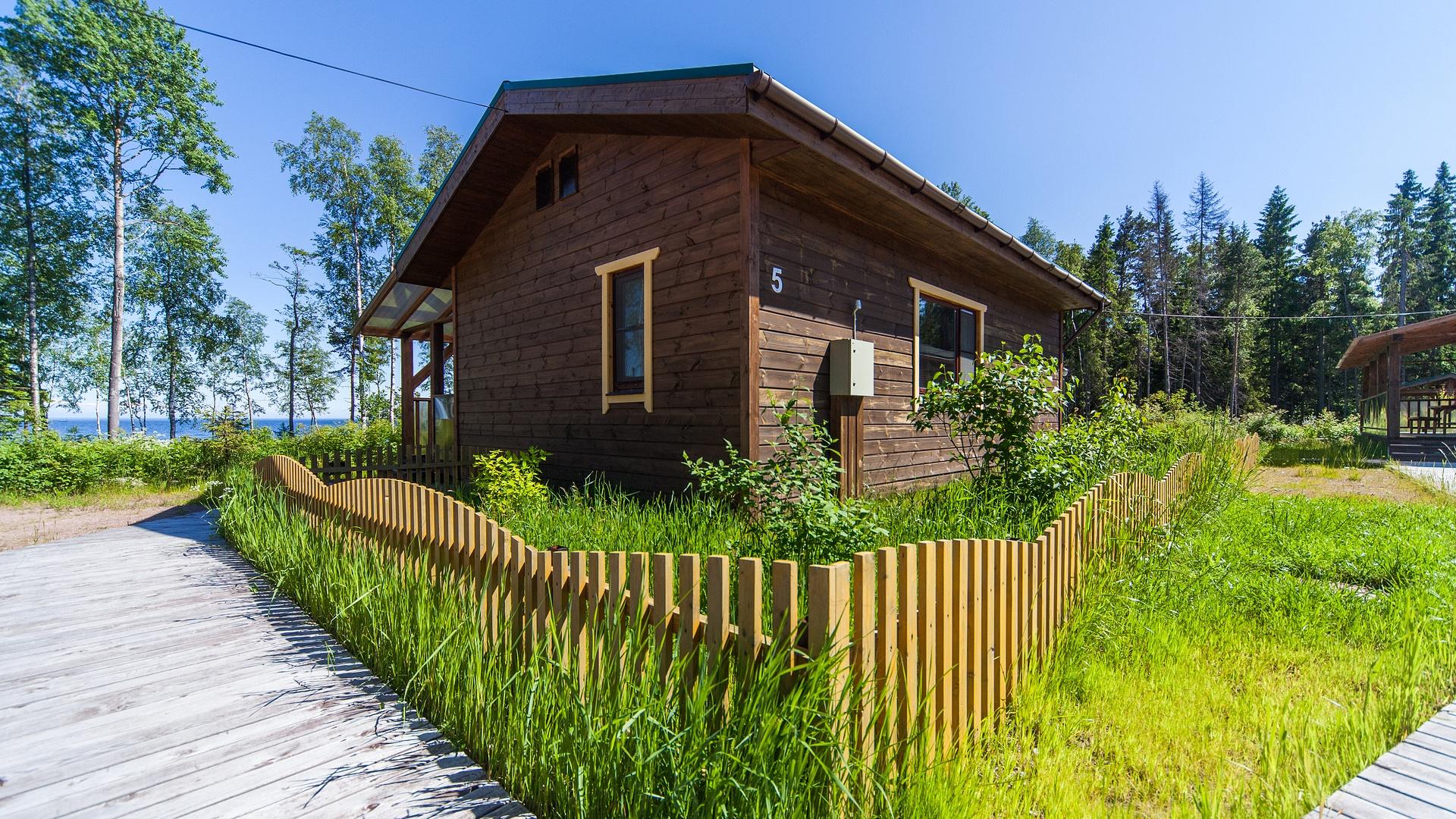 6-ти местные одноэтажные коттеджи с двумя спальнями и кухней-гостиной, с регулируемым отоплением. Отлично подойдут для семьи или компании друзей. Собственная терраса с видом на Ладогу. Перед коттеджами оборудованы мангальные беседки.