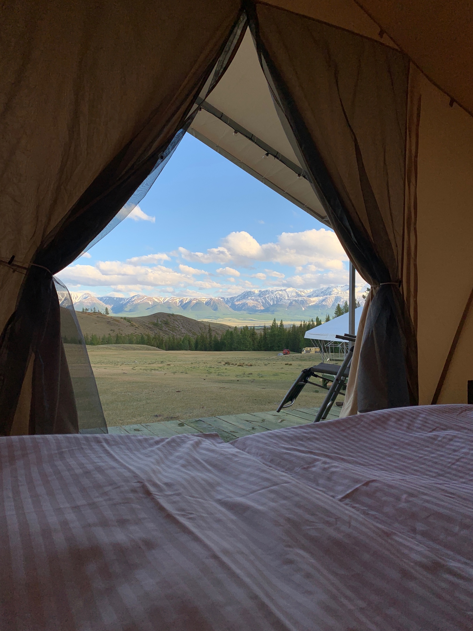 Глэмпинг Курай находится недалеко от одноименного села в Кош-Агачском районе. Из уютных шатров открывается заворачивающий виды. На территории есть походный ресторан. Отдых для тех, кто мечтает пожить в условиях дикой природы не отказываясь от комфорта.