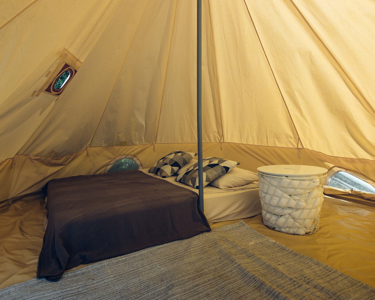 Территория глэмпинга огорожена и постоянно находится под охраной.