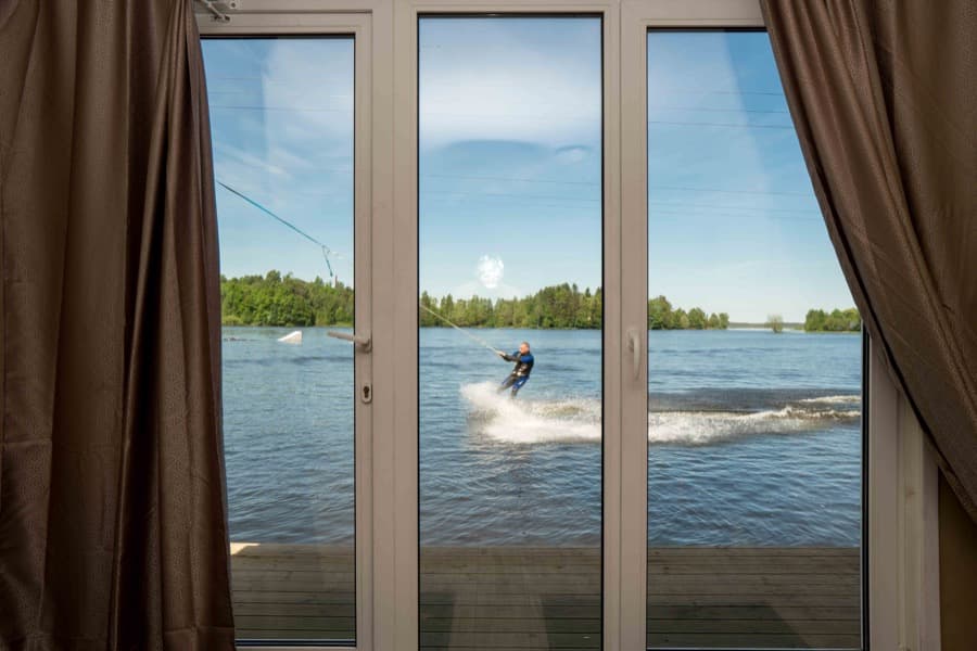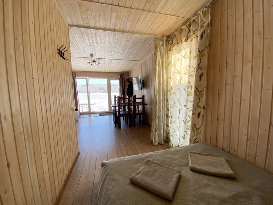 Это плавучий коттедж с окнами в пол, находящийся в самой уединённой части нашей базы, в котором могут с комфортом разместиться до шести человек.
