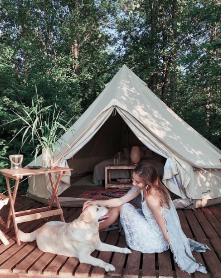 Всего 7 шатров - 5 шатров в лесу, 2 шатра с видом на озеро.