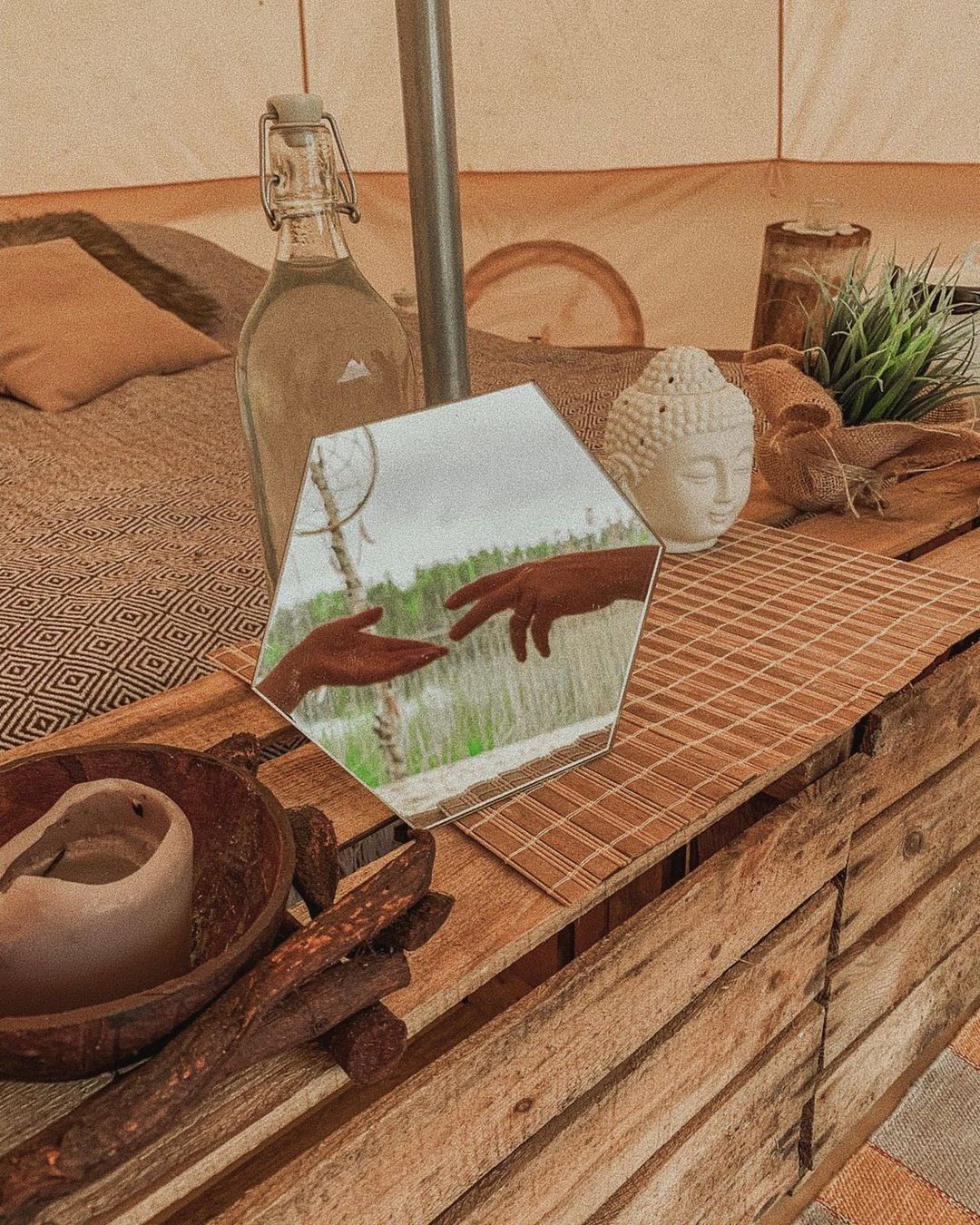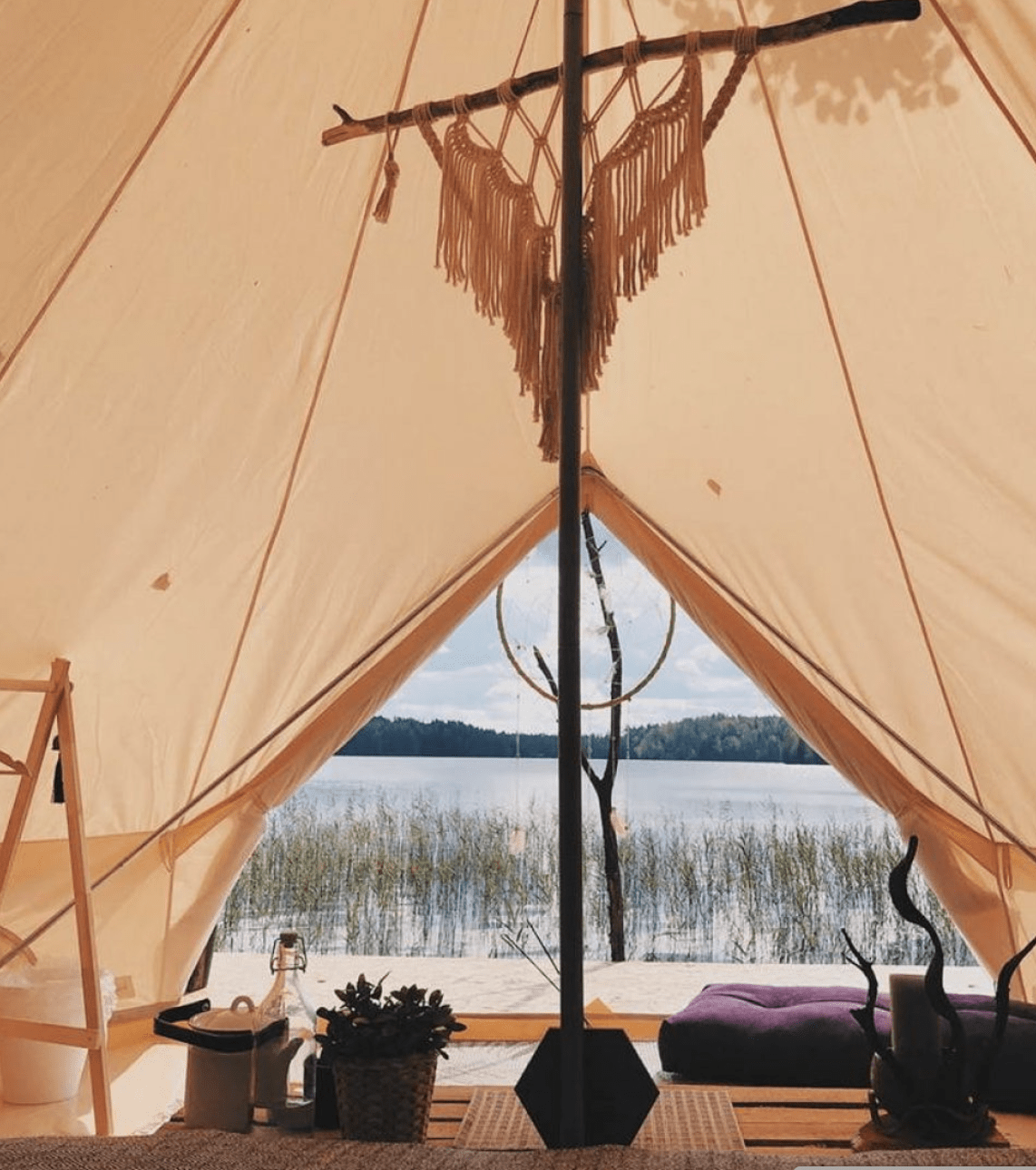 — площадка для практик: возможность позаниматься йогой или помедитировать под шатром на берегу озера;