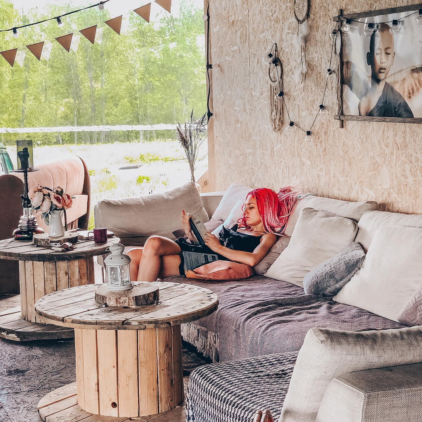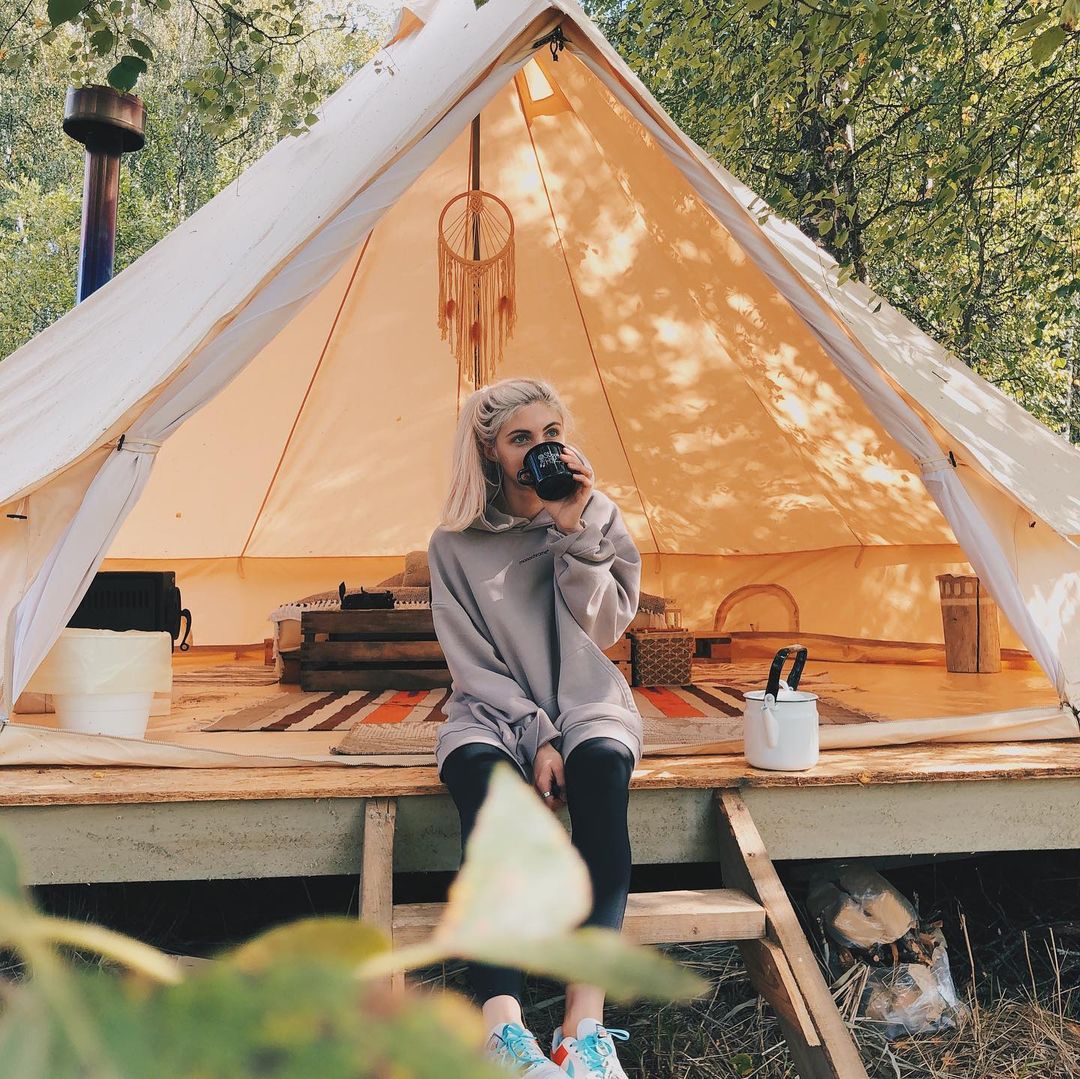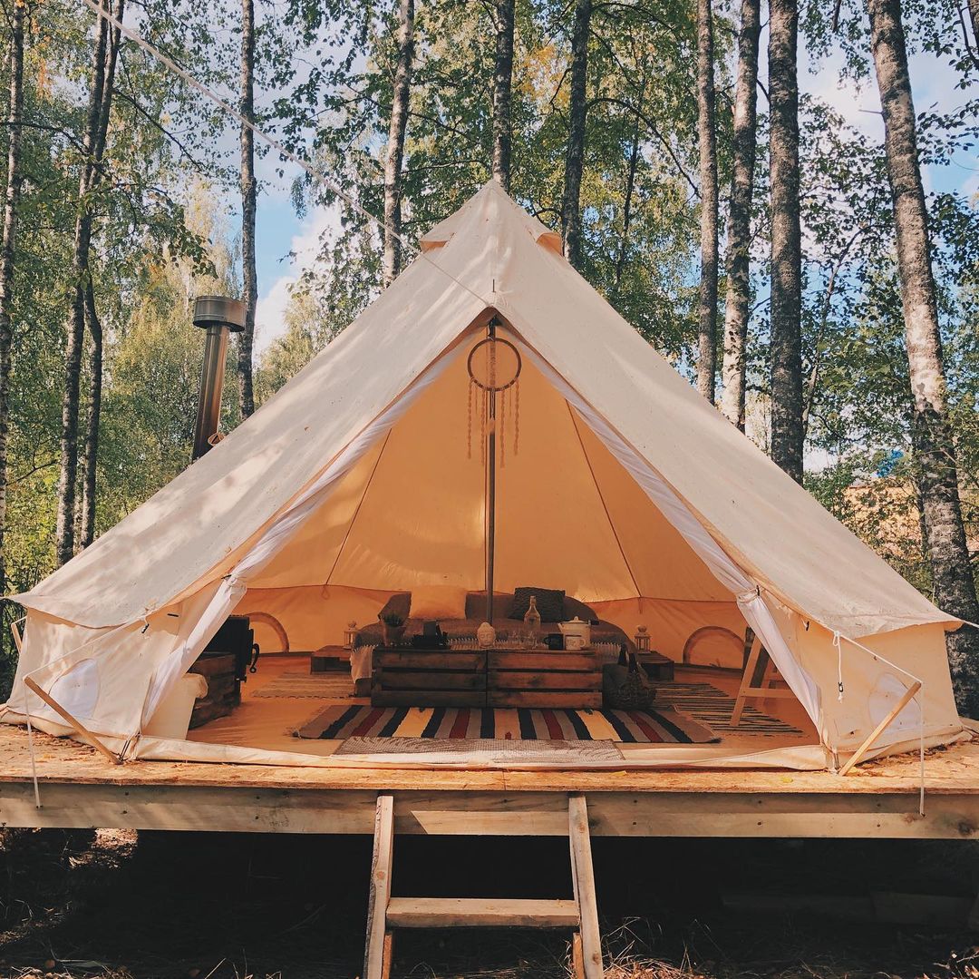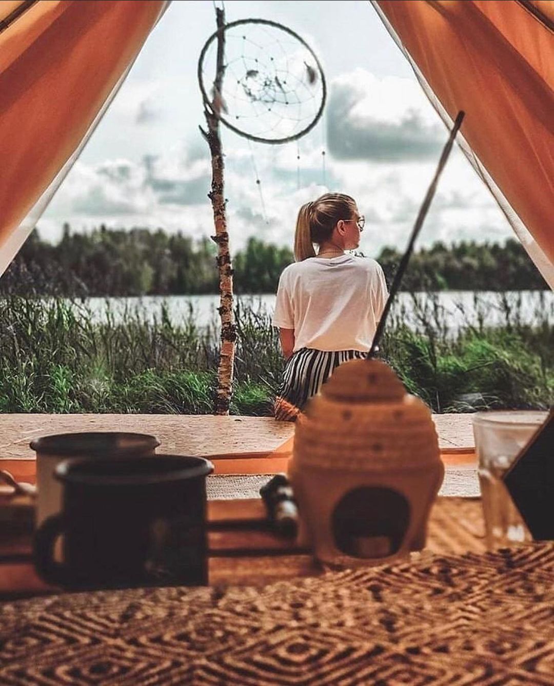 Главный шатер — это больше, чем просто место. Это центр встреч таких разных людей, приехавших насладиться первозданностью природы. По вечерам в шатре собираются гости глэмпинга. В эти моменты случается настоящая магия. Долгие душевные беседы под звуки гитары, теплый свет костра и тающие над его пламенем маршмеллоу. А вокруг лишь пение птиц и живописные закаты.