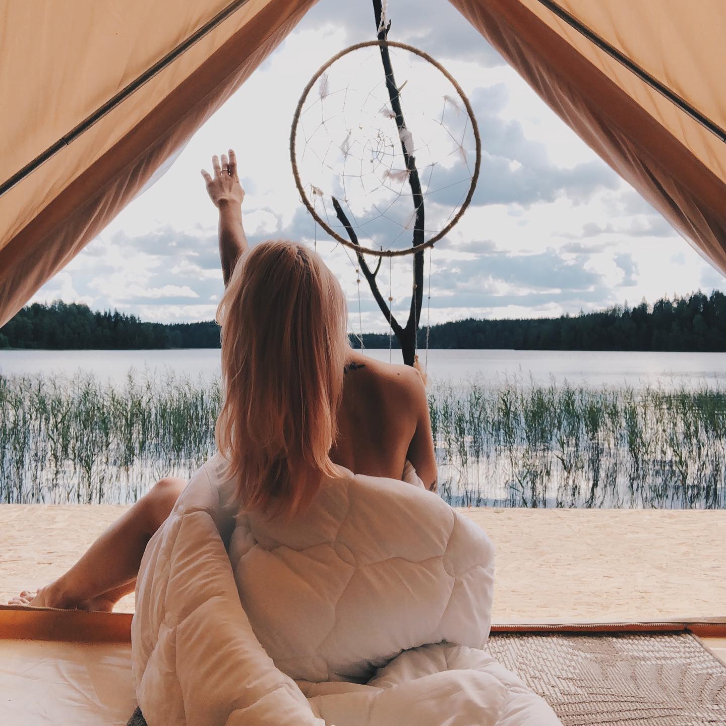 Скоро в нашем глэмпинге появятся эко-домики в виде сферы с чудесным панорамным видом прямо на берегу озера. Из их окон видно небо и весь озерный архипелаг. Сон под звездным небом — просто невероятное ощущение! Единство с природой самым захватывающим образом. Внутри — комфортное уютное пространство с hygge- и boсho- интерьером.