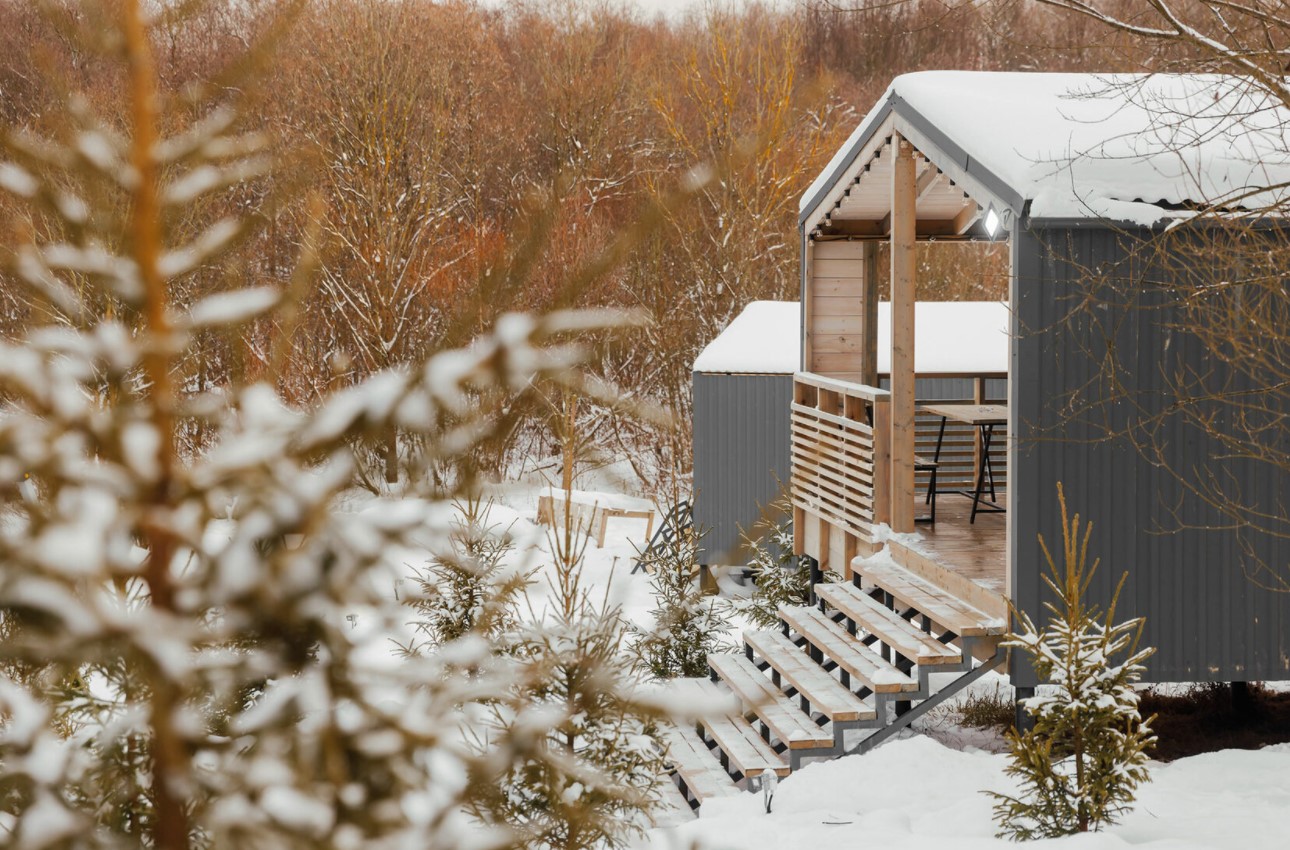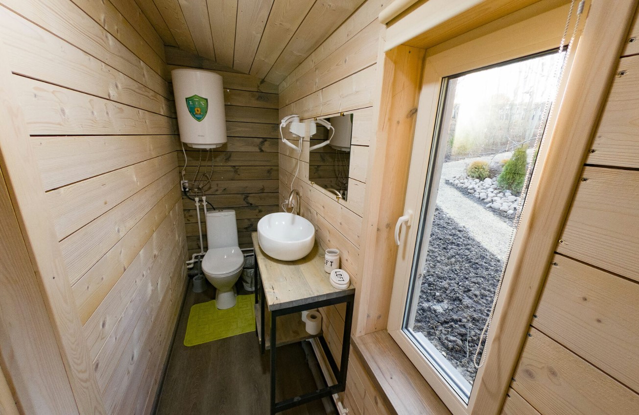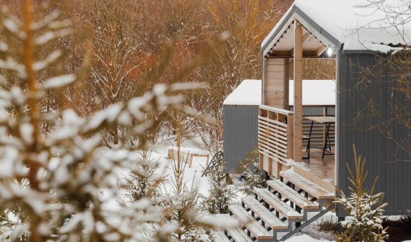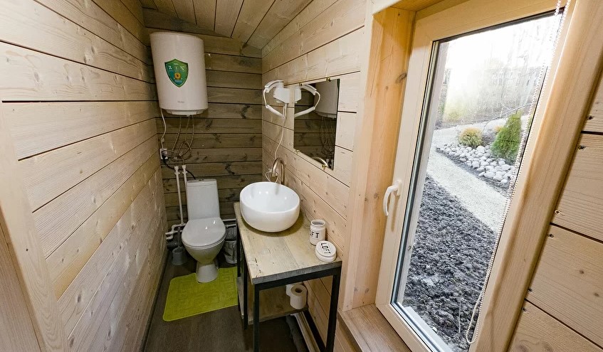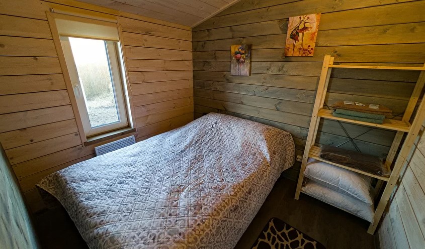 Парная на дровах, просторная гостиная с кухонной зоной. Стол, посуда, чайник, холодильник, микроволновая печь. Телевизор, Wi-Fi, диван, отопление. Санузел, душ.