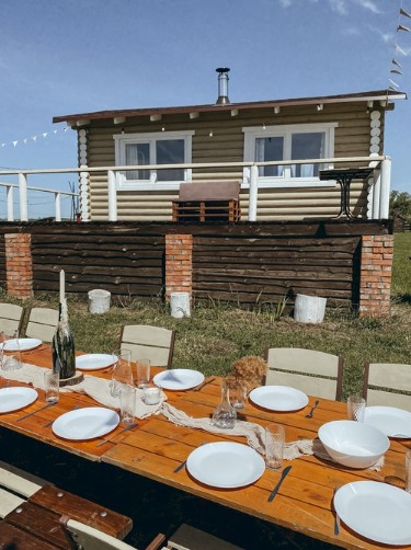 -Домик оснащён всем необходимым для комфортного отдыха: холодильник с небольшой морозилкой и чайник в каждом домике, есть электричество и розетки, пледы на вечер, нужное количество столов и стульев, стульчик детский для кормления, фумигатор и дымящие спирали (для защиты от насекомых).